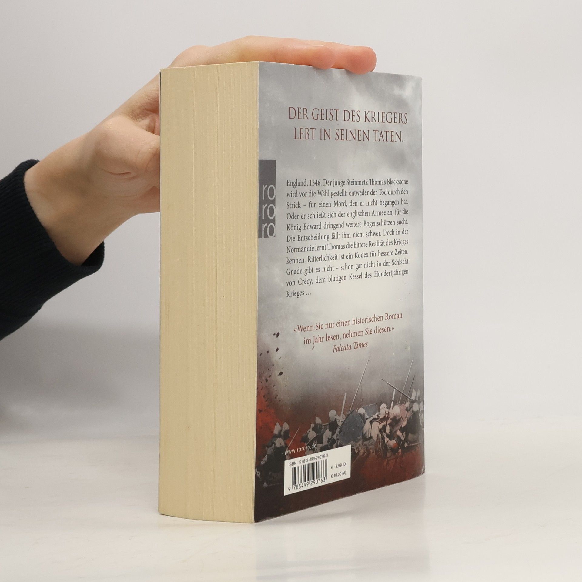 Der Geist des Kriegers lebt in seinen Taten.England, 1346. Der junge Steinmetz Thomas Blackstone wird vor die Wahl gestellt: Entweder der Tod durch den Strick – für einen Mord, den er nicht begangen hat. Oder er schließt sich der englischen Armee an, für die König Edward dringend weitere Bogenschützen sucht. Die Entscheidung fällt ihm nicht schwer. Doch in der Normandie lernt Thomas die bittere Realität des Krieges kennen. Ritterlichkeit ist ein Kodex für bessere Zeiten. Gnade gibt es nicht – schon gar nicht in der Schlacht von Crécy, dem blutigen Kessel des Hundertjährigen Krieges …