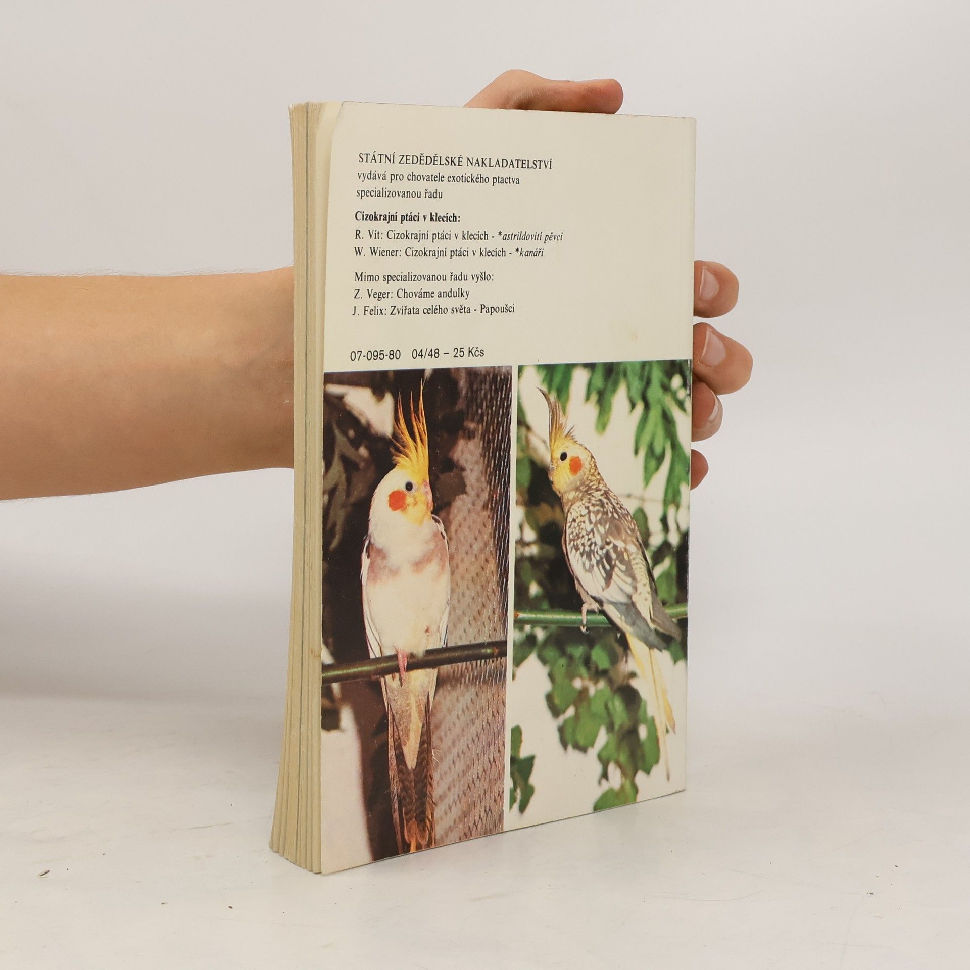 Příručka o problematice chovu korel. Zabývá se biologií korely chocholaté, jejím životem v přirozeném prostředí, zásadami chovu v klecích a voliérách, bytech i venku, její výživou i krmením. 07-095-80