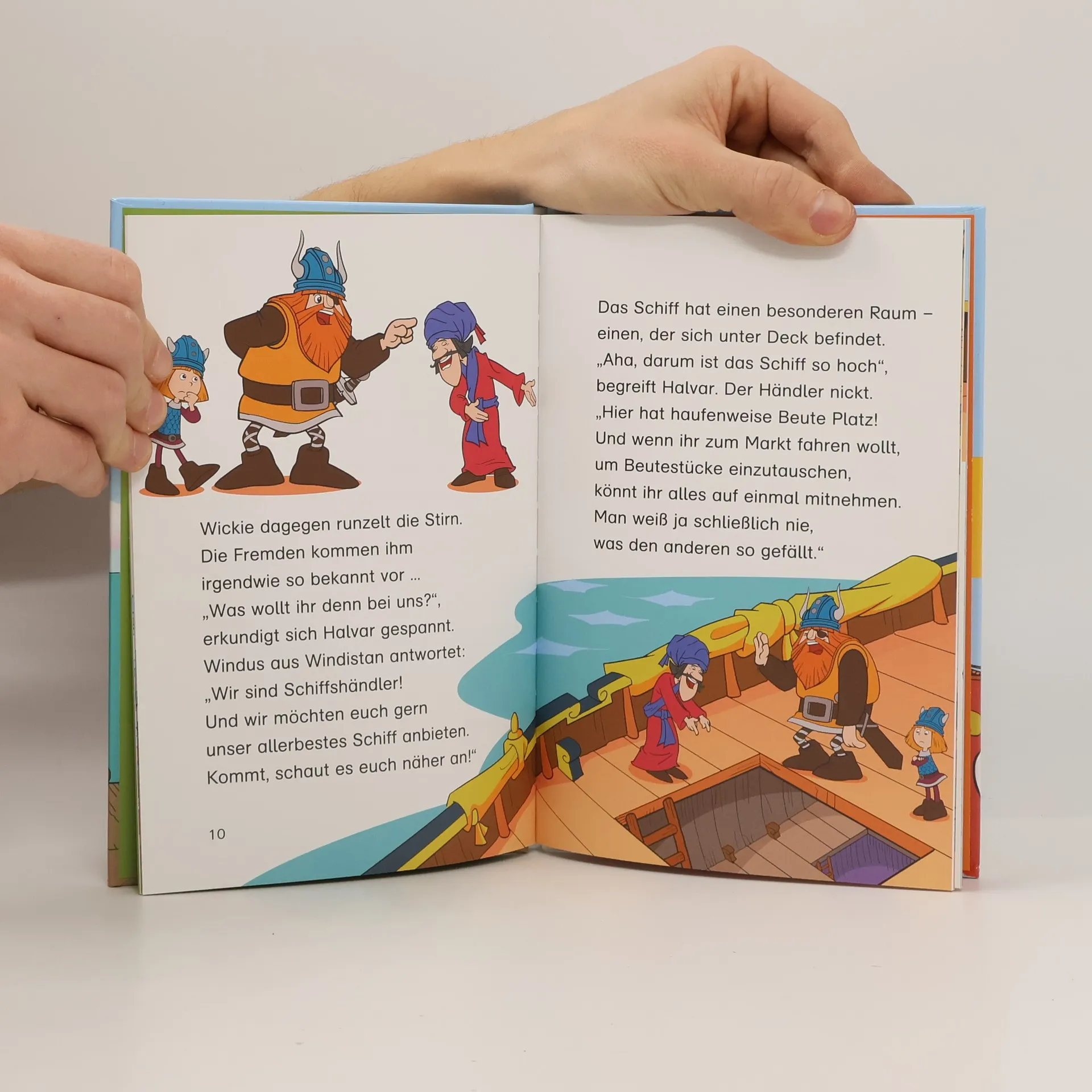 Die Wikinger werden in Flake von Schiffshändlern besucht, die ein prachtvolles Superschiff zum Kauf anbieten. Halvar kauft es den Händlern begeistert ab. Doch als die starken Männer ihre erste Fahrt mit dem Superschiff unternehmen, regt sich plötzlich etwas im Schiffsbauch … Neue Abenteuergeschichten zum Lesenlernen mit Illustrationen in neuer Optik! Die optimale Lektüre für jeden Erstleser: ausgewogener Text-/Bildanteil, an Lesefähigkeit angepasste Schriftgröße und Zeilenlänge, „Starke Fragen für helle Köpfe“ zur spielerischen Überprüfung des Leseverständnisses. Extra: Lese-Pass mit Wickie zum Ausschneiden und mit viel Platz zum Eintragen. So macht Lesenlernen Spaß - mit Wickie und der Kompetenz des Lernhilfen-Profis!