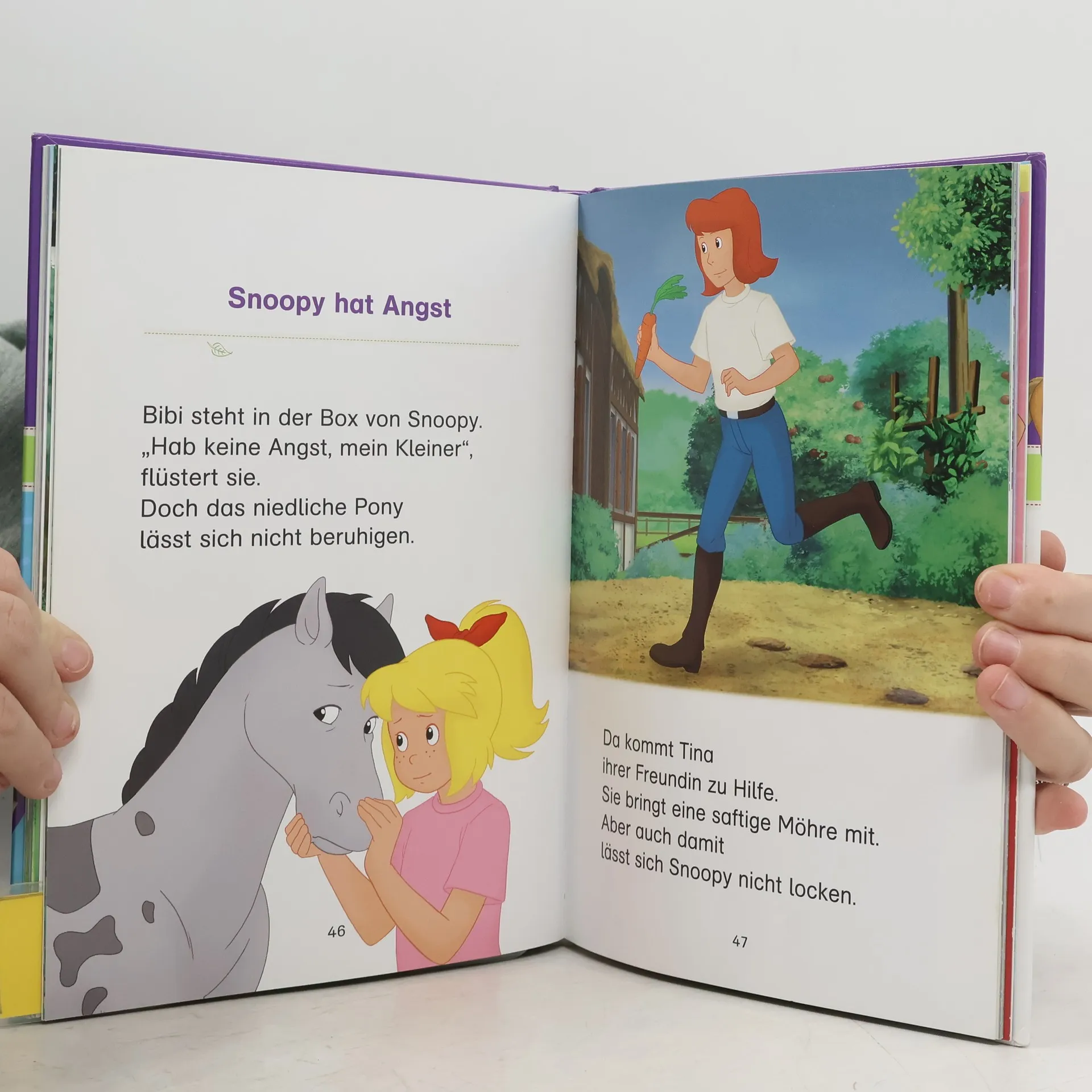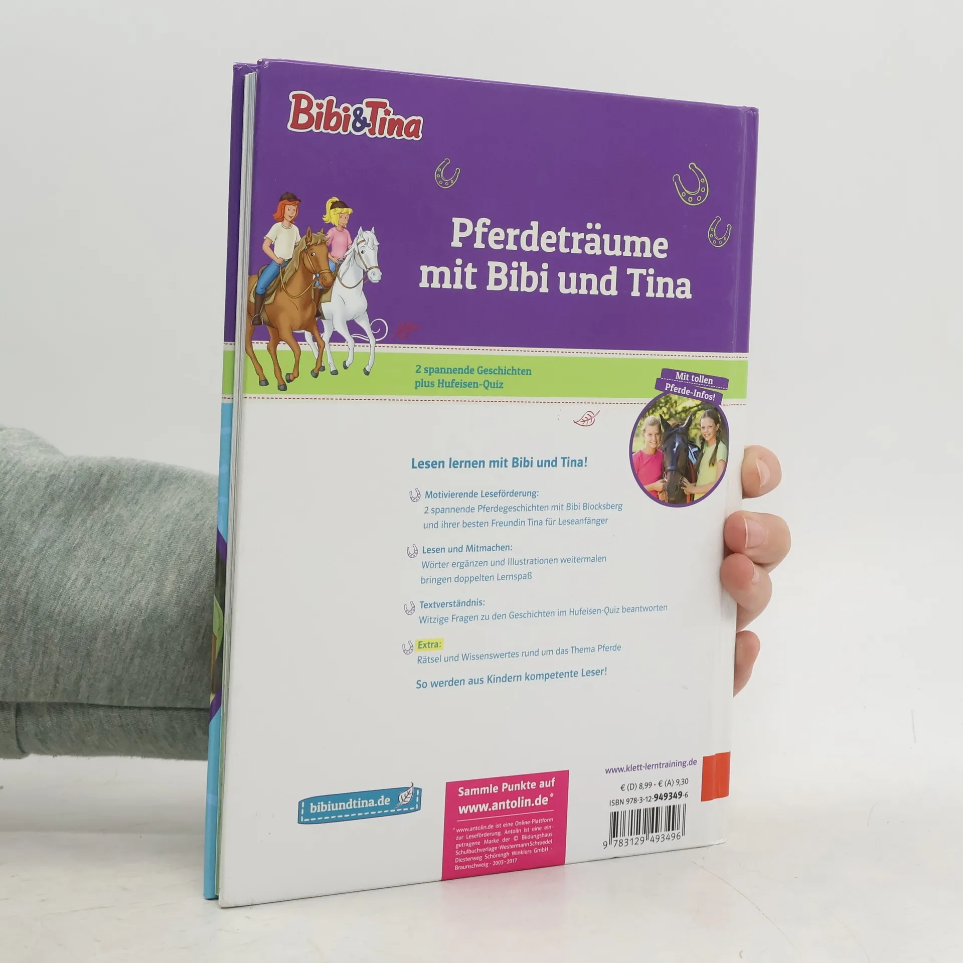 2 spannende Geschichten mit 10 tollen Extraseiten Pferde-Wissen! Jede Geschichte ist genau auf das Lesevermögen von Leseanfängern abgestimmt Nach dem Prinzip „Lesen-Verstehen-Mitmachen“ vervollständigen die kleinen Leser selbst Illustrationen oder den Text der Bibi& Tina-Geschichten Mit Hufeisen-Quiz zur spielerischen Überprüfung des Leseverständnisses EXTRA: In den 10 Extraseiten verraten Bibi und Tina den Pferde-Fans jede Menge Wissenswertes über Pferde, wie z. B. Rund um den Stall, Ponyrassen uvm. Die optimale Motivation für Leseanfänger, die Freude an und mit Pferden haben.