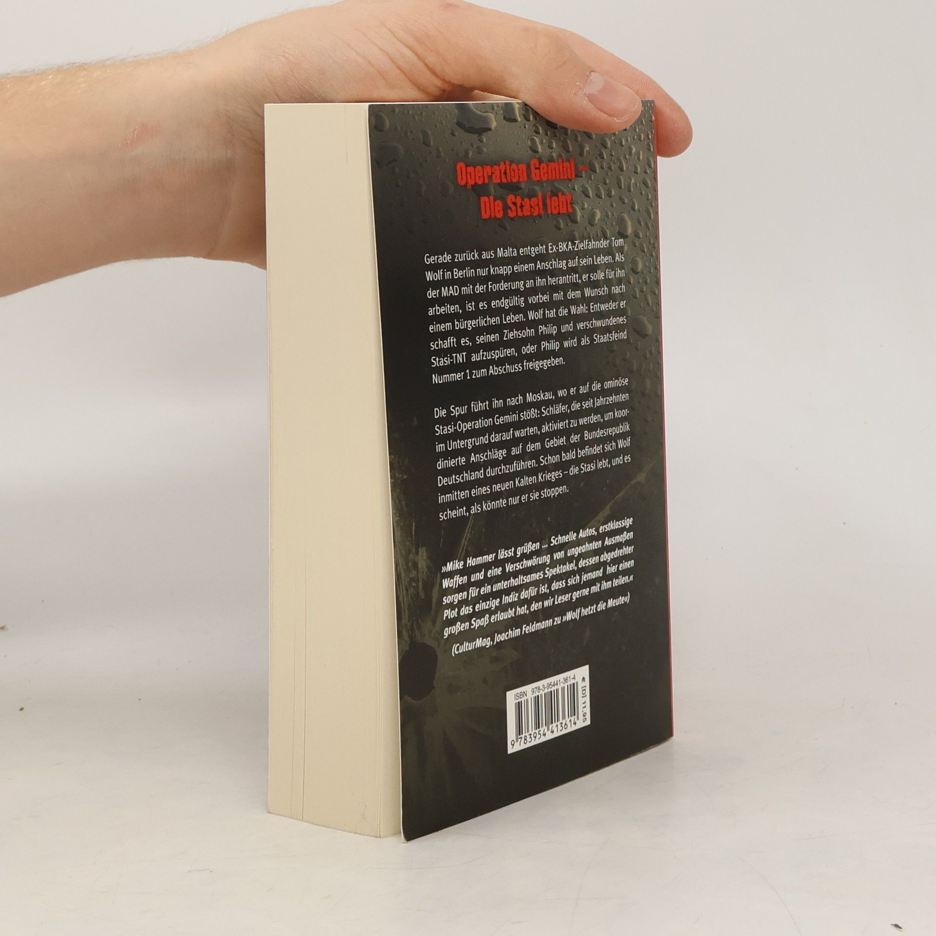 Operation Gemini – Die Stasi lebt Gerade zurück aus Malta entgeht Ex-BKA-Zielfahnder Tom Wolf in Berlin nur knapp einem Anschlag auf sein Leben. Als der MAD mit der Forderung an ihn herantritt, er solle für ihn arbeiten, ist es endgültig vorbei mit dem Wunsch nach einem bürgerlichen Leben. Wolf hat die Wahl: Entweder er schafft es, seinen Ziehsohn Philip und verschwundenes Stasi-TNT aufzuspüren, oder Philip wird als Staatsfeind Nummer 1 zum Abschuss freigegeben. Die Spur führt ihn nach Moskau, wo er auf die ominöse Stasi-Operation Gemini stößt: Schläfer, die seit Jahrzehnten im Untergrund darauf warten, aktiviert zu werden, um koordinierte Anschläge auf dem Gebiet der Bundesrepublik Deutschland durchzuführen. Schon bald befindet sich Wolf inmitten eines neuen Kalten Krieges – die Stasi lebt, und es scheint, als könnte nur er sie stoppen.