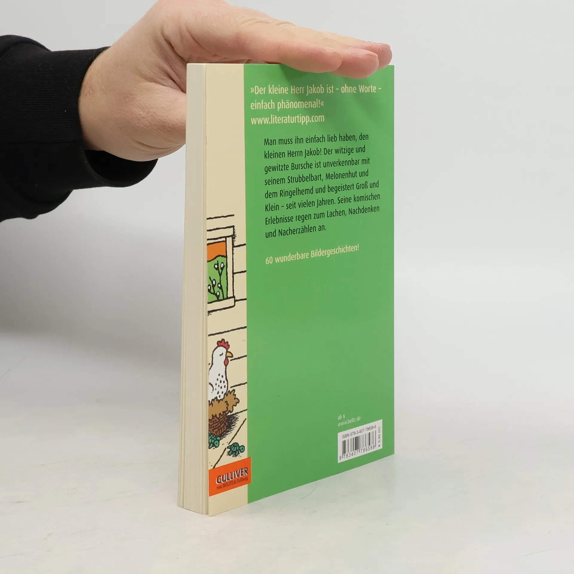 Längst zum Klassiker avanciert: Die Bildergeschichten vom kleinen Herrn Jakob. Jetzt ist er wieder da! 60 Bildergeschichten vom kleinen Herrn Jakob, 60 Geschichten ohne Worte. Der kleine Herr Jakob, unverkennbar mit seinem Strubbelbart, Melonenhut und dem Ringelhemd, ist ein liebenswerter, witziger und gewitzter Bursche. Seine komischen Erlebnisse regen zum Lachen, Nachdenken und Nacherzählen an.
