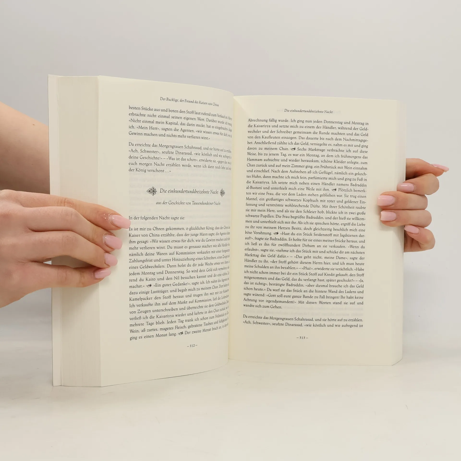 Nächte, die niemals zu Ende gehen sollen So fing alles an. Die nächtlichen Erzählungen von Schahrasad, mit denen sie ihren königlichen Gatten verzaubert und so nicht nur ihren eigenen Tod immer wieder aufschiebt, entführen den Leser in die Welt der Basare und Karawansereien, der weisen Kalifen und verschlagenen Händler, der vornehmen Damen und klugen Ehefrauen, der mächtigen Zauberinnen und bösen Dämonen. Sie berichten von harten Schicksalsschlägen und erotischen Vergnügungen.
