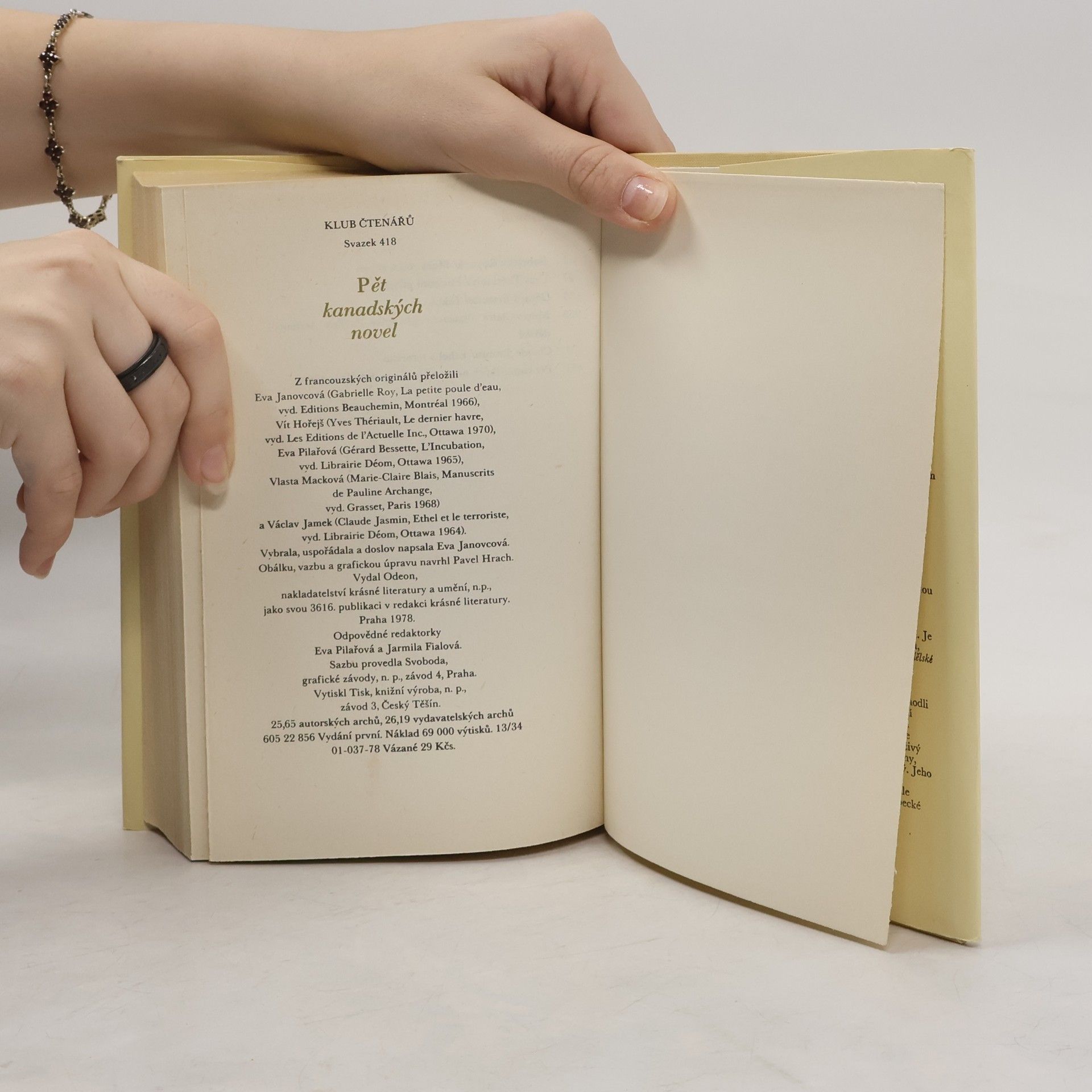 5 kanadských novel z Quebecu: Gabrielle Royová: Malá vodní slípka; Yves Theriault: Poslední přístav; Gerard Bessette: Inkubace; Marie-Claire Blaisová: Rukopisy Pavlíny Archandělské; Claude Jasmin: Ethel a terorista.
