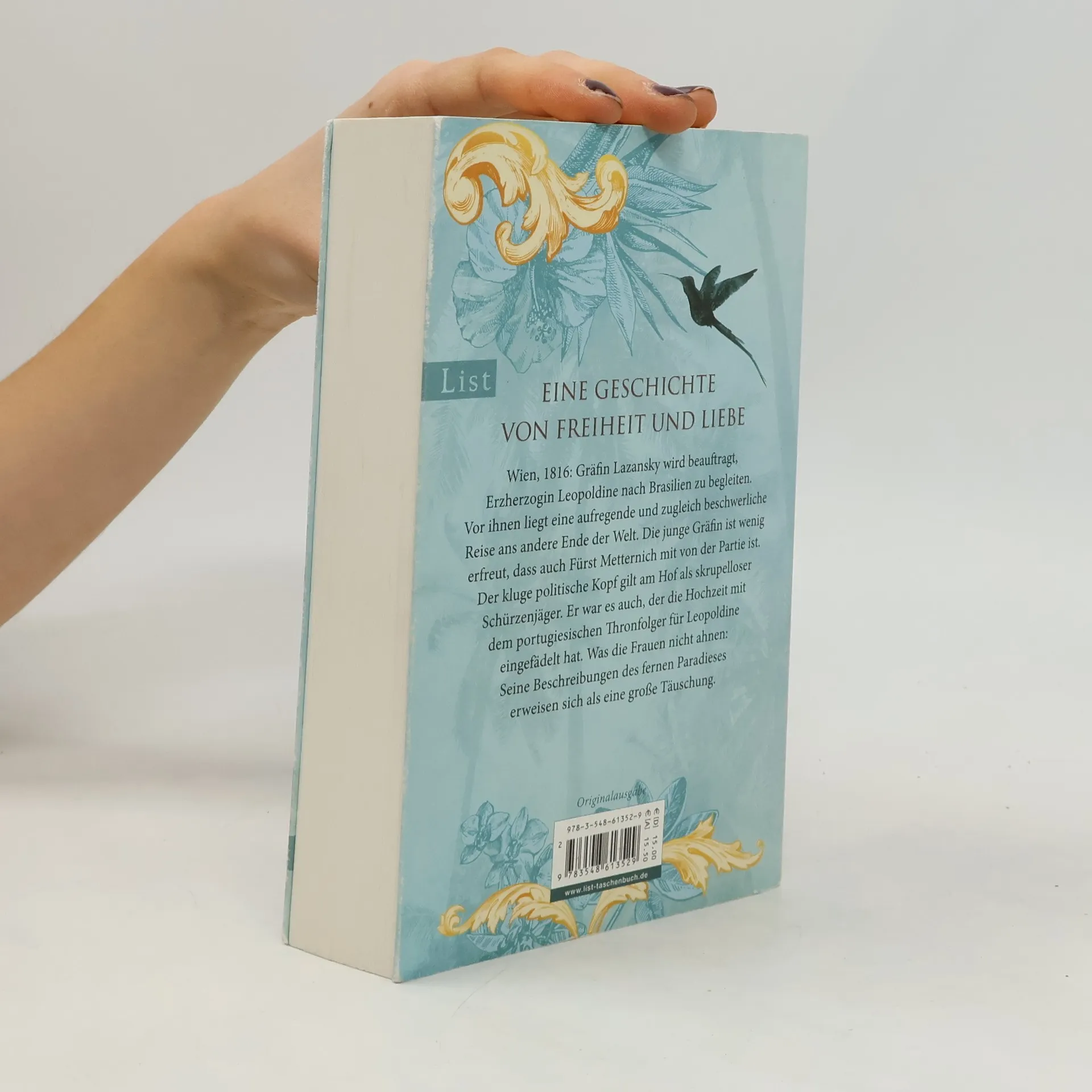 Eine Geschichte von Freiheit und Liebe Wien, 1816: Gräfin Lazansky wird beauftragt, Erzherzogin Leopoldine nach Brasilien zu begleiten. Vor ihnen liegt eine aufregende und zugleich beschwerliche Reise ans andere Ende der Welt. Die junge Gräfin ist wenig erfreut, dass auch Fürst Metternich mit von der Partie ist. Der kluge politische Kopf gilt am Hof als skrupelloser Schürzenjäger. Er war es auch, der die Hochzeit mit dem portugiesischen Thronfolger für Leopoldine eingefädelt hat. Was die Frauen nicht ahnen: Seine Beschreibungen des fernen Paradieses erweisen sich als eine große Lüge.