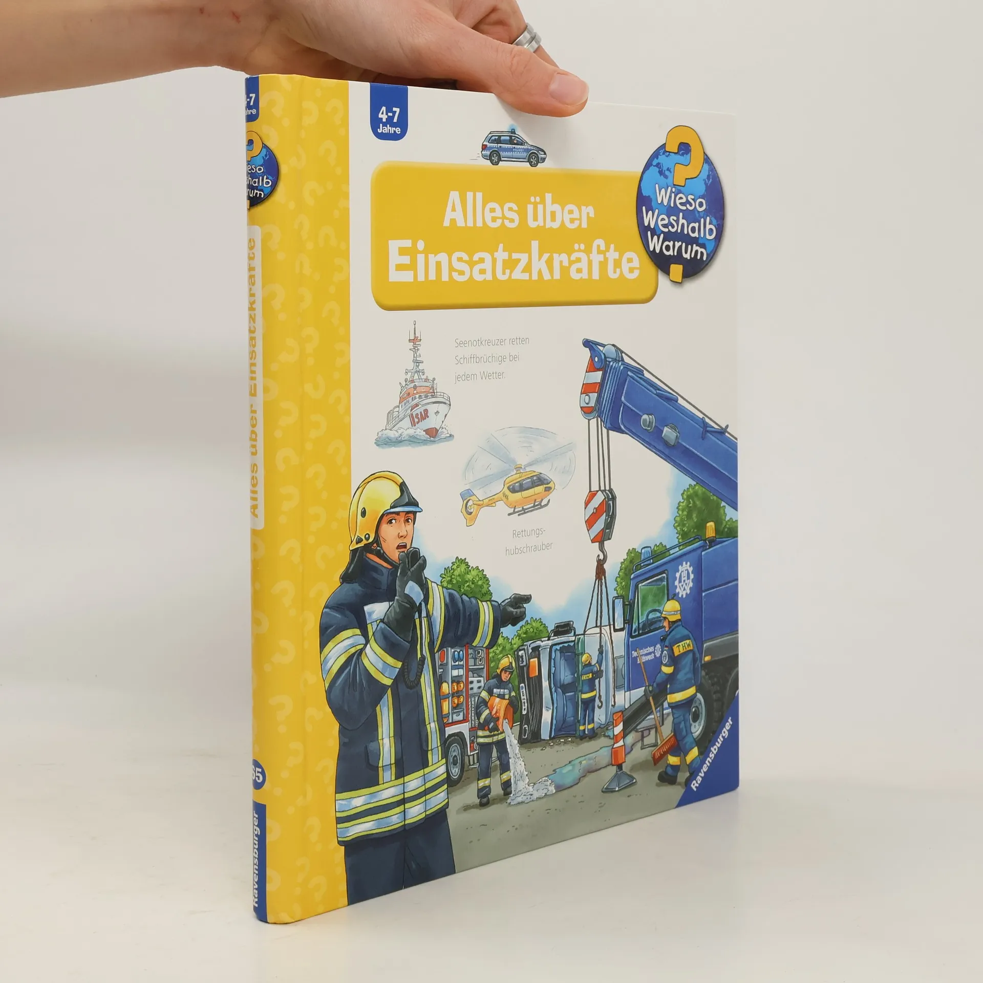 Rumms! Ein Tanklaster ist mit einem Holztransporter zusammengestoßen. Doch Rettung naht schon! Feuerwehr, Technisches Hilfswerk und Polizei sichern die Unfallstelle, während sich der Notarzt und seine Kollegen um die Verletzen kümmern. Ob Hochwasser, Erdbeben oder Banküberfall – zahlreiche Frauen und Männer sind immer einsatzbereit und zur Stelle, um zu helfen! Neben den Rettern stellt das Buch ihre Einsatzfahrzeuge und Spezialausrüstung vor. Wieso? Weshalb? Warum? Die Sachbuchreihe für Kinder von 4–7 Jahren Jeden Tag entdecken Kinder etwas Neues – da kommen viele Fragen auf. Warum sind die Dinosaurier ausgestorben? Wo ist die Sonne in der Nacht? Wozu brauchen wir das Blut? Die beliebte Sachbuchreihe Wieso? Weshalb? Warum? gibt Kindern Antworten auf Augenhöhe. Dabei werden die unterschiedlichsten Themen aus der Alltags- und Interessenswelt der Kinder altersgerecht und mit viel Liebe zum Detail unter die Lupe genommen. Detailreiche Bilder, verständliche Sachtexte und überraschende Klappen, die Bewegungen oder Abläufe veranschaulichen und hinter die Dinge blicken lassen, ermöglichen Kindern, sich ihre Themen selbst zu erschließen. Der Spaß am eigenhändigen Entdecken, die liebevolle Umsetzung und die qualitativ hochwertige Ausstattung garantieren langanhaltende Freude an jedem einzelnen Buch.