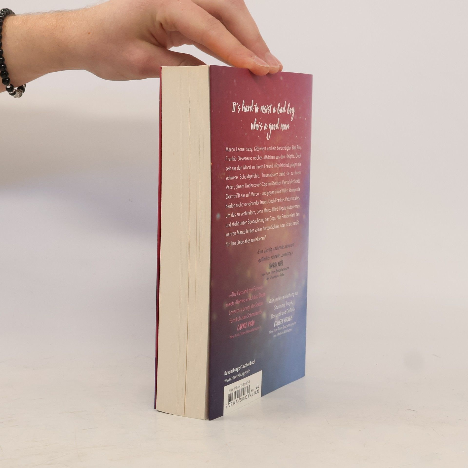 It's hard to resist a bad boy, who's a good man. Marco Leone: sexy, tätowiert und ein berüchtigter Bad Boy. Frankie Devereux: reiches Mädchen aus den Heights. Doch seit sie den Mord an ihrem Freund miterlebt hat, plagen sie schwere Schuldgefühle. Traumatisiert zieht sie zu ihrem Vater, einem Undercover-Cop im übelsten Viertel der Stadt. Dort trifft sie auf Marco – und gegen ihren Willen können die beiden nicht voneinander lassen. Doch Frankies Vater tut alles, um das zu verhindern, denn Marco fährt illegale Autorennen. Nur Frankie sieht hinter Marcos harte Schale. Aber ist sie bereit, für ihre Liebe alles zu riskieren? Lebe schnell, liebe gefährlich … »Ich mache dich nervös. Ist es das? Für dich bin ich Abschaum aus den Downs. Wir sind allein und es ist dunkel. Ich verstehe schon.« Er klingt verletzt.»Ich habe keine Angst vor dir.« Ich will von der Motorhaube rutschen, aber Marco beugt sich vor und legt seine Hände rechts und links von mir aufs Auto. Sein Blick wandert zu meinen Lippen. »Das hier macht dir also nichts aus?«Ich zwinge mich, in seine dunklen Augen zu schauen, und lasse es darauf ankommen. »Kein bisschen.«»Dann beweis es.« Ein Lächeln umspielt seine Mundwinkel. »Küss mich.«