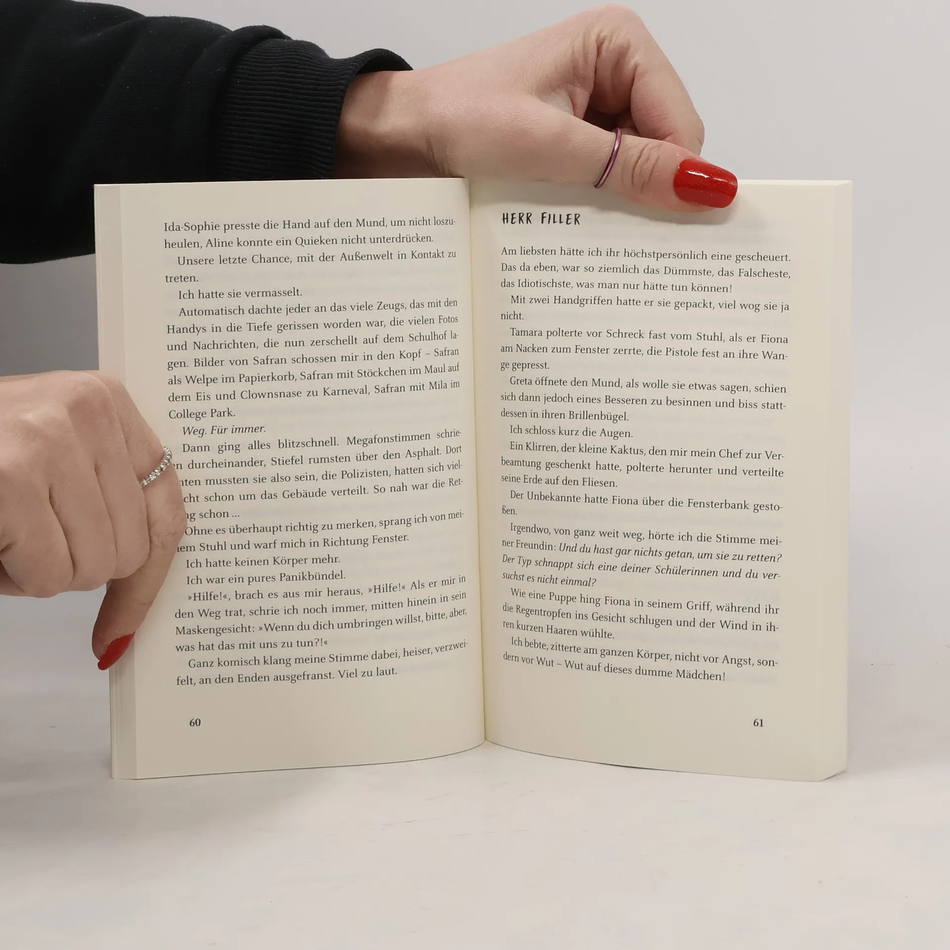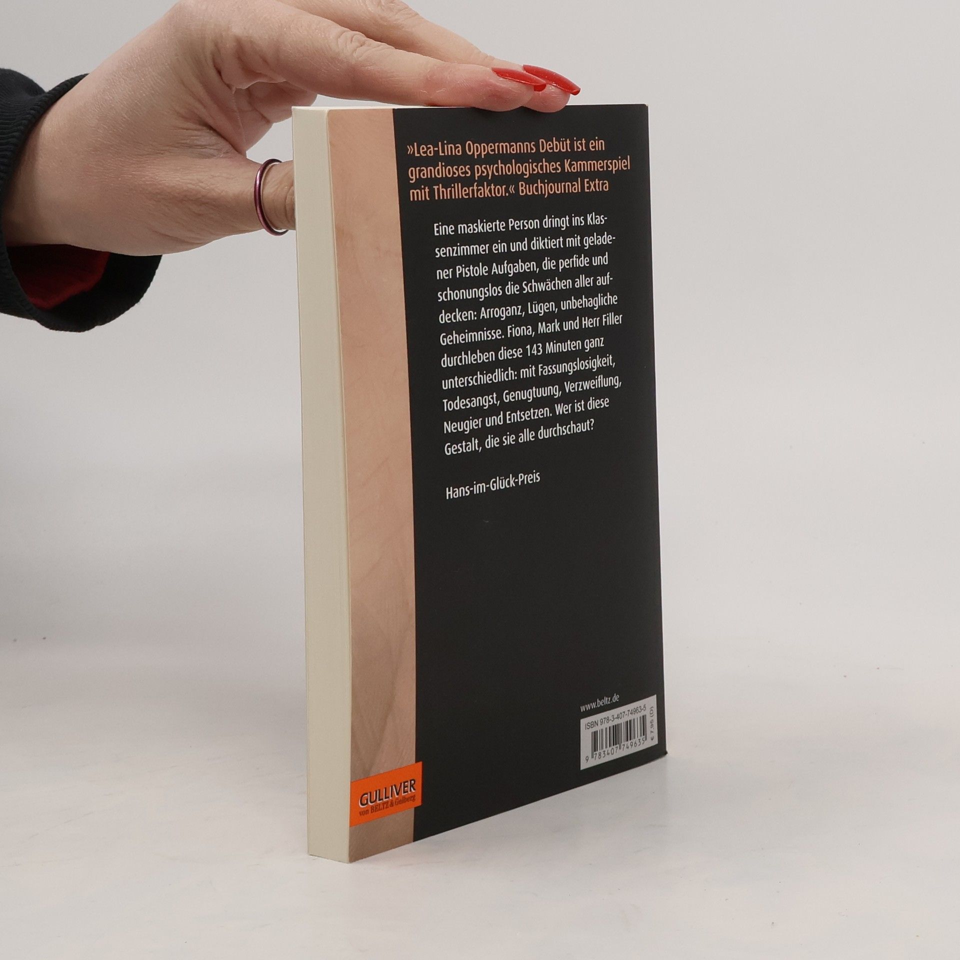 Amokalarm. Eine maskierte Person dringt ins Klassenzimmer ein und diktiert mit geladener Pistole Aufgaben, die erbarmungslos die Geheimnisse aller an die Oberfläche zerren. Arroganz, Diebstähle, Mitläufertum, Lügen – hinter sorgsam gepflegten Fassaden tun sich Abgründe auf. Fiona ist fassungslos, unfähig zu handeln, Mark verspürt Genugtuung und Herr Filler schwankt zwischen Wut und Passivität. Bald sind die Grenzen so weit überschritten, dass es für niemanden mehr ein Zurück gibt. Ein messerscharf komponiertes psychologisches Kammerspiel mit Thrillerfaktor!