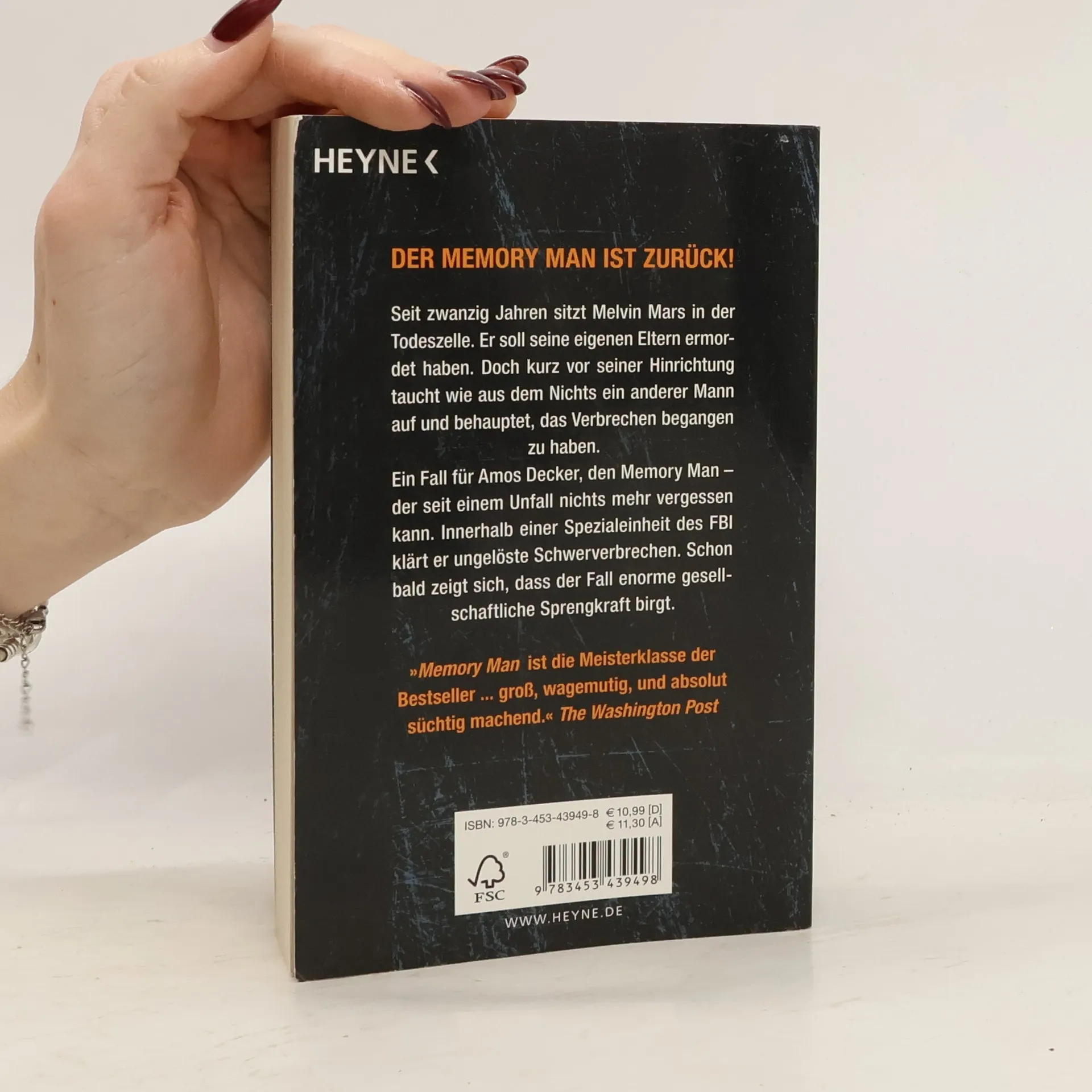 Der Memory Man ist zurück! Seit zwanzig Jahren sitzt Melvin Mars in der Todeszelle. Er soll seine eigenen Eltern ermordet haben. Doch kurz vor seiner Hinrichtung taucht wie aus dem Nichts ein anderer Mann auf und behauptet, das Verbrechen begangen zu haben. Ein Fall für Amos Decker, den Memory Man – der seit einem Unfall nicht mehr vergessen kann. Innerhalb einer Spezialeinheit des FBI klärt er ungelöste Schwerverbrechen. Schon bald zeigt sich, dass der Fall enorme gesellschaftliche Sprengkraft birgt.