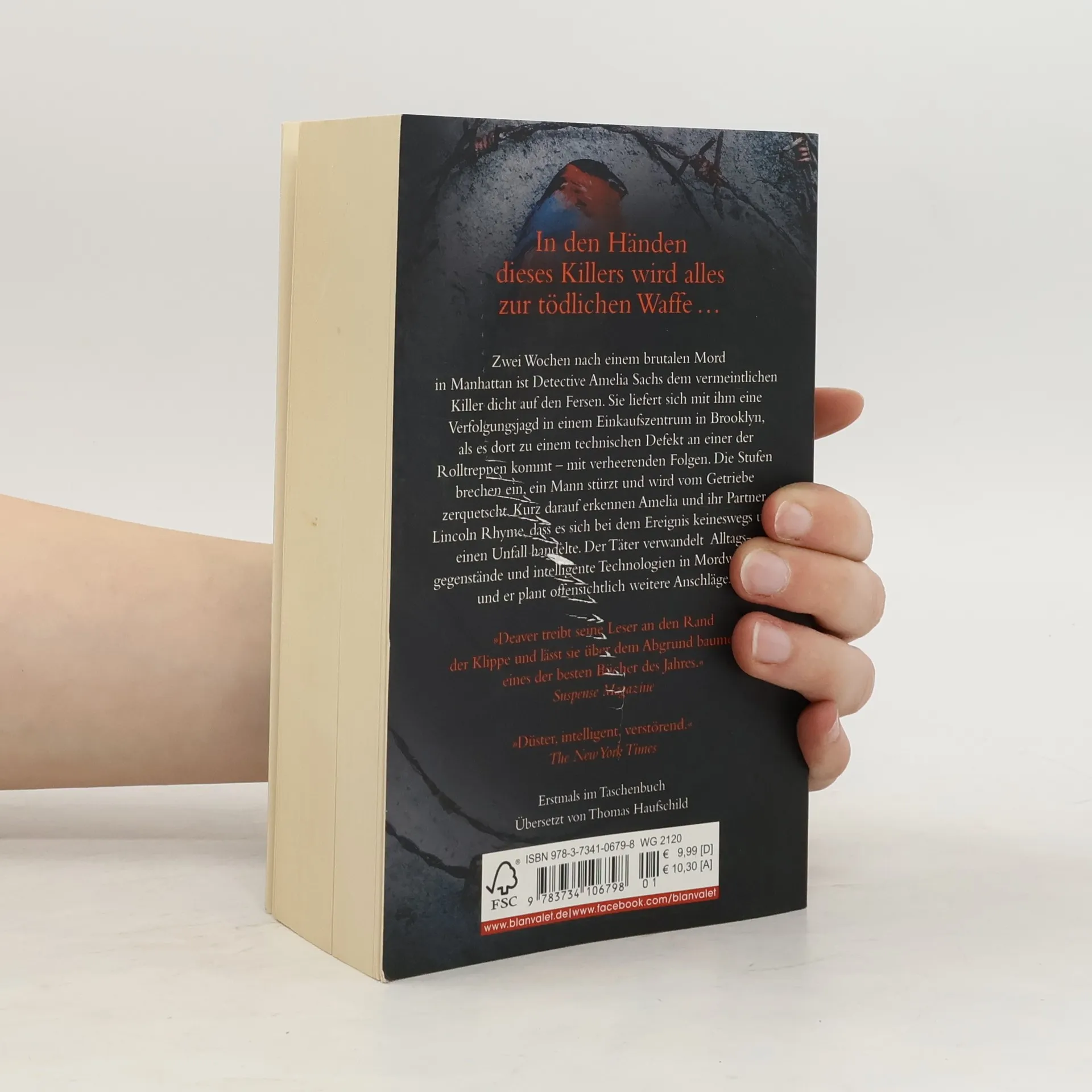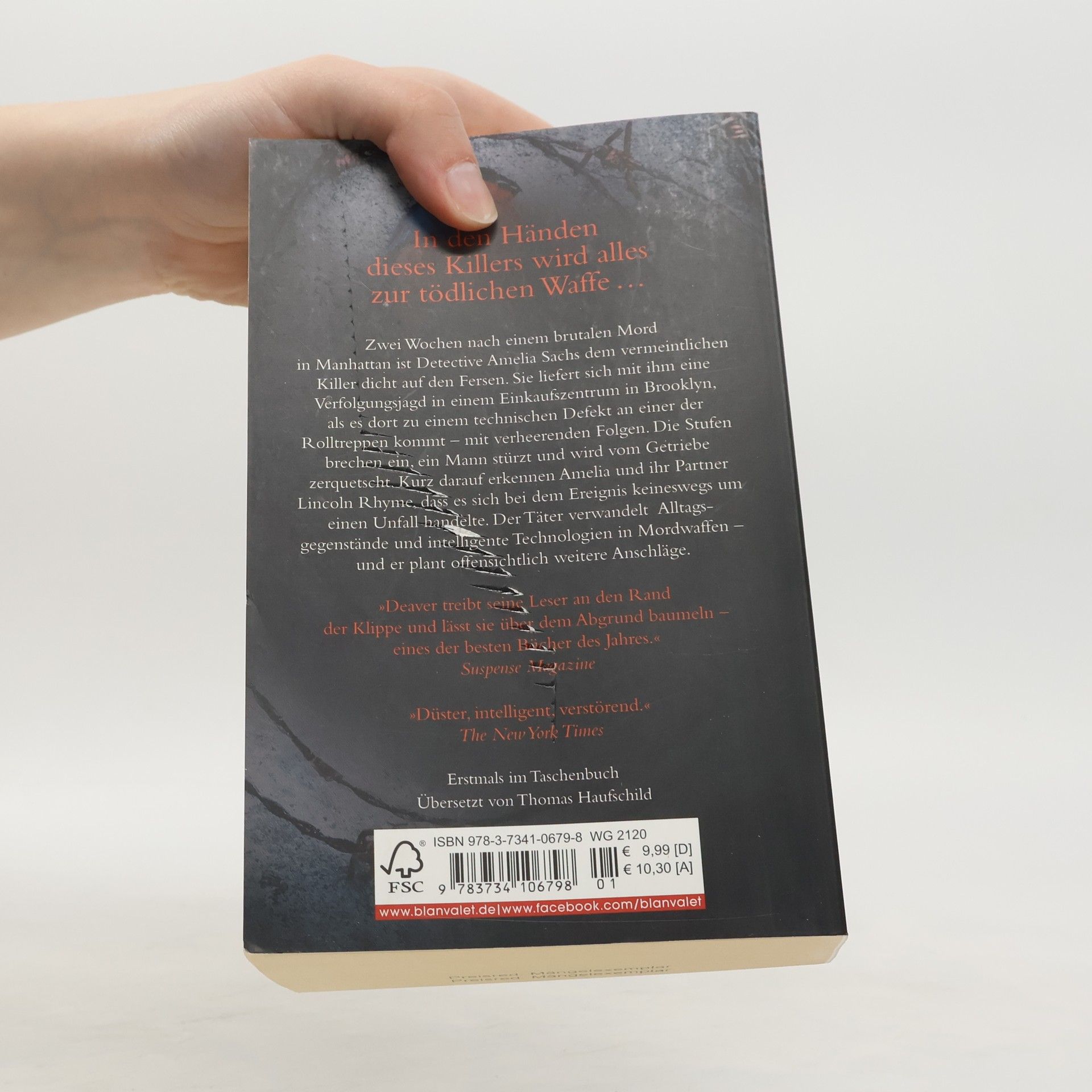 Der 12. Fall für Lincoln Rhyme und Amelia Sachs. Zwei Wochen nach einem brutalen Mord in Manhattan ist Detective Amelia Sachs dem vermeintlichen Killer dicht auf den Fersen. Sie liefert sich mit ihm eine Verfolgungsjagd in einem Einkaufszentrum in Brooklyn, als es dort zu einem technischen Defekt an einer der Rolltreppen kommt – mit verheerenden Folgen. Die Stufen brechen ein, ein Mann stürzt und wird vom Getriebe zerquetscht. Kurz darauf erkennen Amelia und ihr Partner Lincoln Rhyme, dass es sich bei dem Ereignis keineswegs um einen Unfall handelte. Der Täter verwandelt Alltagsgegenstände und intelligente Technologien in Mordwaffen – und er plant offensichtlich weitere Anschläge.
