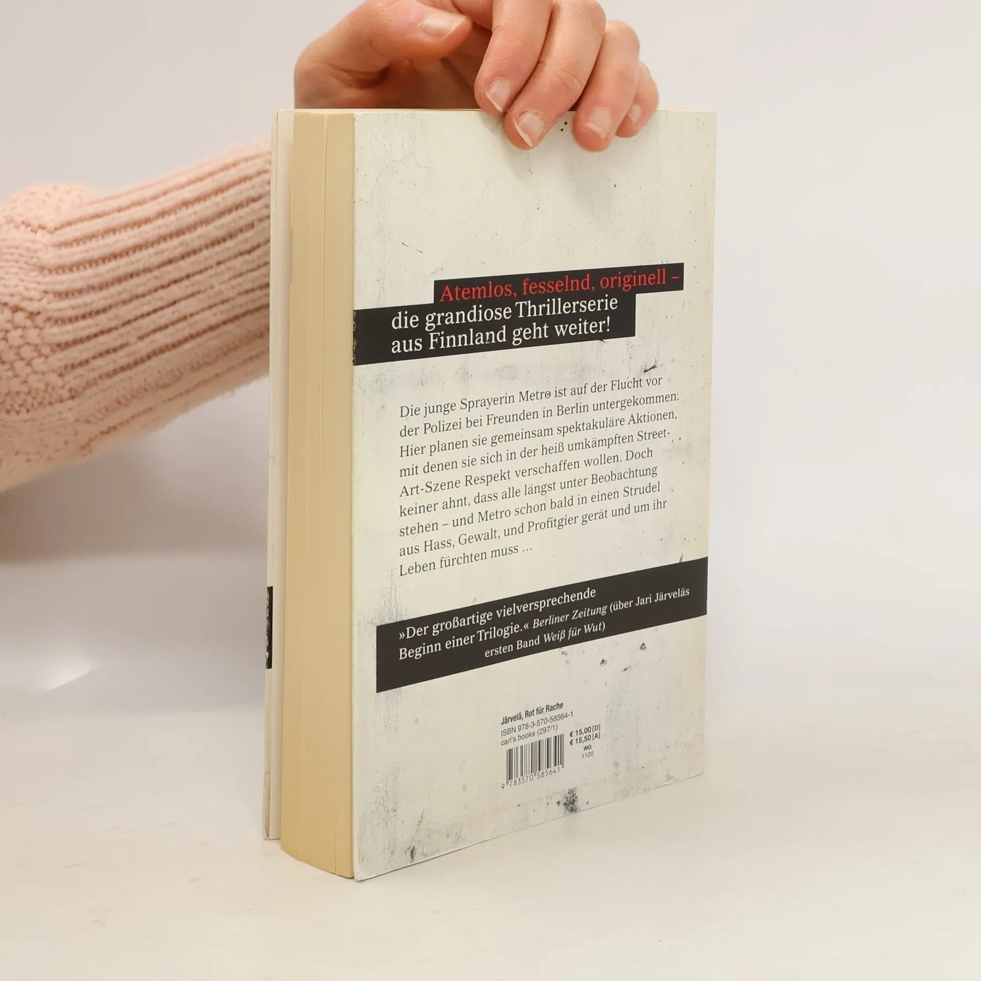 Die junge rebellische Sprayerin Metro ist nach einem dramatischen Zusammenstoß mit dem Sicherheitsdienst aus ihrer finnischen Heimatstadt Kotka nach Berlin geflohen. Sie lebt mit einigen Freunden illegal auf dem Dachboden eines abbruchreifen Hauses, in dem sich vor vielen Jahren bereits der legendäre Street-Artist Banksy mit einem riesigen Wandbild verewigt hat. Doch weder Metro noch ihre Freunde ahnen, dass es jemanden gibt, der aus reiner Profitgier längst ein Auge auf Banksys Kunstwerk geworfen hat. Jemand, der nicht davor zurückschreckt, für sein spektakuläres Vorhaben auch über Leichen zu gehen… Der zweite Teil der finnischen Thriller-Serie mit der todesmutigen Sprayerin Metro ist ein atemloses Drama um Freundschaft, Vergeltung, den Preis der Kunst und den des Lebens.