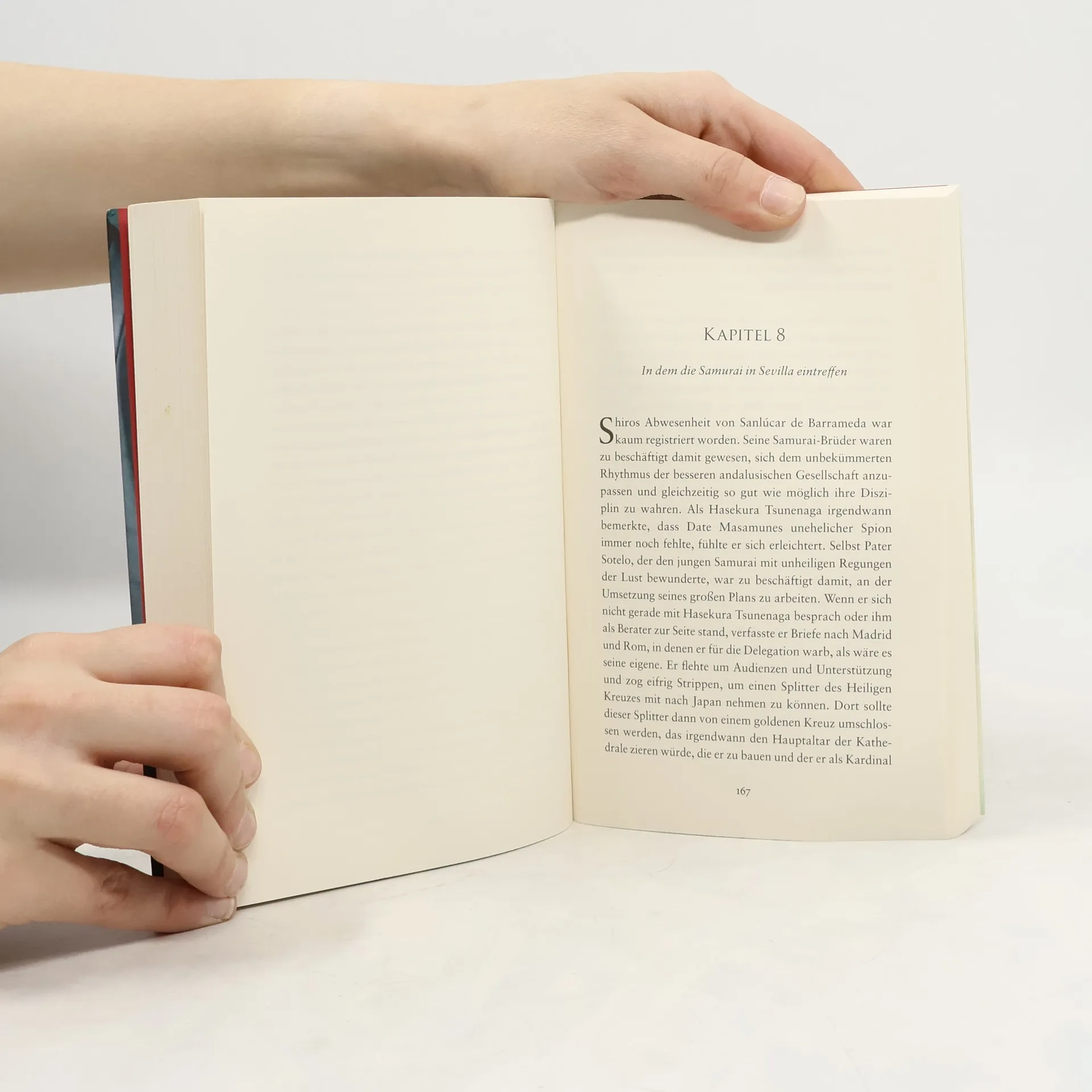 Im Jahre 1614 segelte eine Delegation von Samurai-Kriegern und Händlern von Japan nach Spanien. Es waren die ersten Japaner, die europäischen Boden betraten. Vor diesem Hintergrund erzählt John Healey die Geschichte des jungen Kriegers Shiro, der von der Erblinie seines Vaters, des mächtigen Fürsten Date Masamune, ausgeschlossen wird. Als Bastard soll Shiro, in den Künsten der Samurai bewandert, eine Handelsdelegation begleiten, die den langen Seeweg nach Spanien auf sich nimmt. Für Shiro beginnt eine schicksalhafte Reise, die ihn zwischen die Ränkespiele zweier spanischer Adelsfamilien führt. Von seinen eigenen Leuten verstoßen, verliebt Shiro sich in die schöne und eigenwillige Guada, die einem Edelmann versprochen ist. Zwischen den zwei so fremden Kulturen beginnt eine große und tragische Liebe …