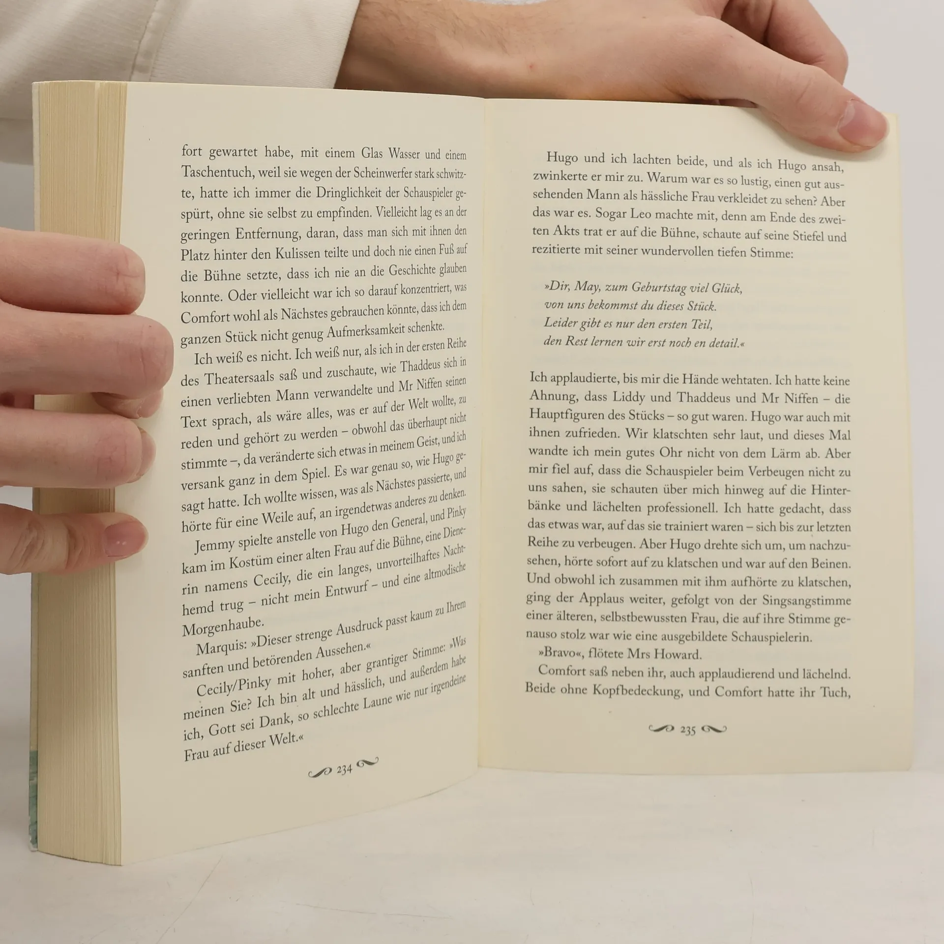 1838 auf dem Ohio River: May Bedloe arbeitet als Schneiderin für ihre Cousine Comfort Vertue, eine gefeierte Schauspielerin. May hatte nie das Bedürfnis, im Scheinwerferlicht zu stehen, und ist mit ihrem einfachen Leben zufrieden. Doch dann trennt sich Comfort überraschend von May, und zum ersten Mal in ihrem Leben ist diese ganz auf sich allein gestellt. Aus der Not heraus heuert sie auf Hugo Cushings Theaterschiff an – und blüht auf. Denn die bunte, exotische Truppe, die ihr dort begegnet, lässt sie endlich zu sich selbst finden. Als ihr dann noch Hugo selbst Avancen macht, scheint ihrem Glück nichts mehr im Wege zu sein. Doch gerade als May ihren Platz im Leben gefunden zu haben glaubt, wird sie vor die größte Herausforderung ihres Lebens gestellt …