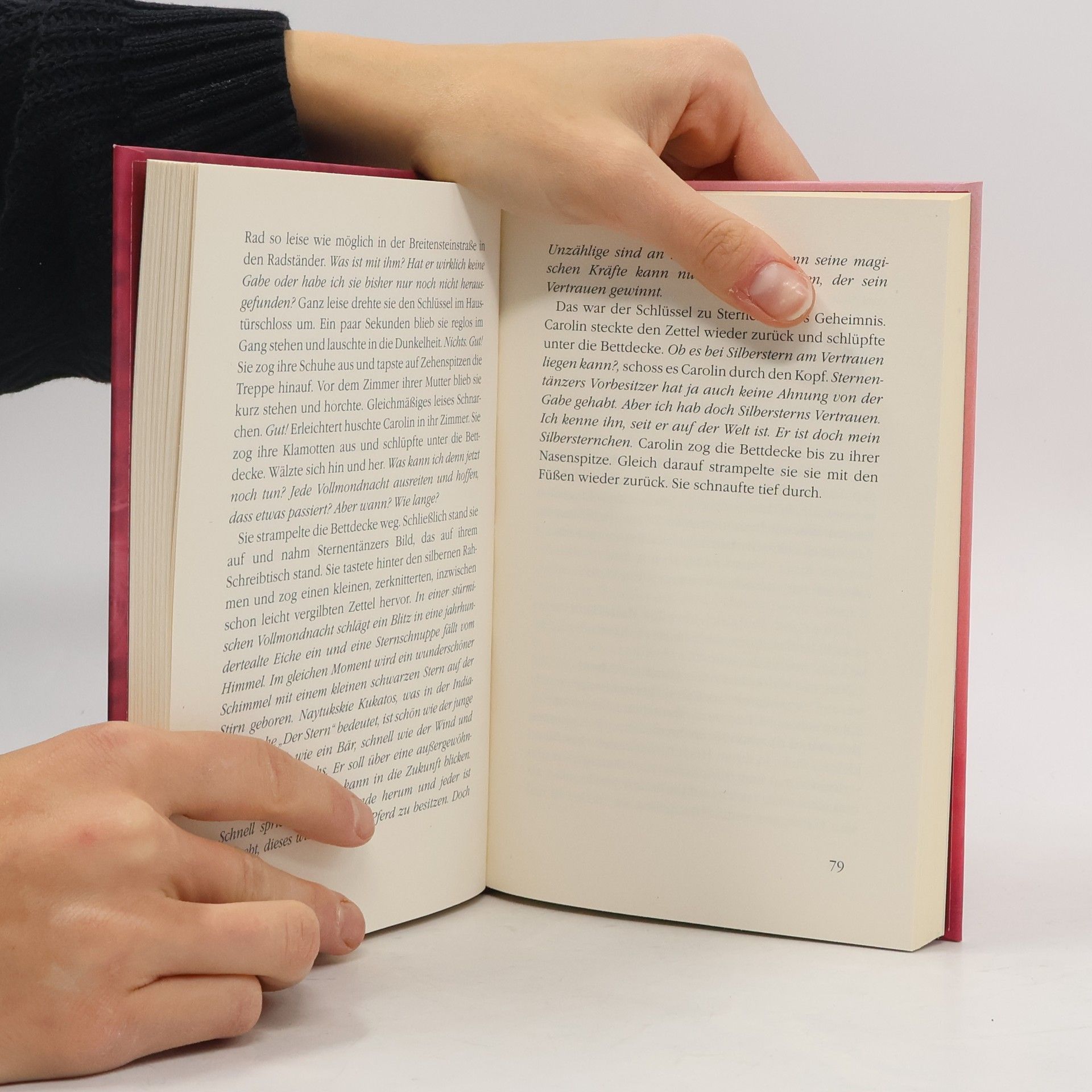 Sternentänzers Sohn Silberstern wird eingeritten – und Caro hofft, nun endlich zu erfahren, ob der stolze Hengst dieselben magischen Fähigkeiten hat wie sein Vater. Doch bei den ersten Vollmondritten passiert nichts. Caro ist sich nicht sicher, wie sie das deuten soll. Hat Silberstern nun eine geheimnisvolle Gabe oder nicht? Eine spannende Suche nach dem Geheimnis von Sternentänzers Sohn beginnt …