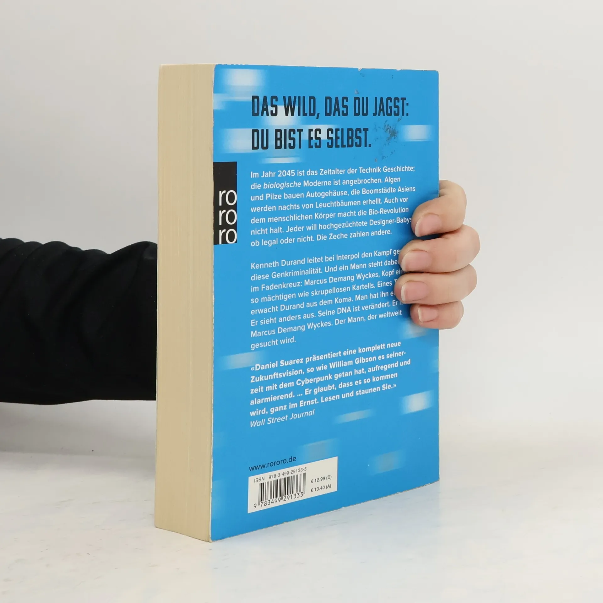 Das Wild, das du jagst: Du bist es selbstIm Jahr 2045 ist das Zeitalter der Technik Geschichte; die biologische Moderne ist angebrochen. Algen und Pilze bauen Autogehäuse, die Boomstädte Asiens werden nachts von Leuchtbäumen erhellt. Auch vor dem menschlichen Körper macht die Bio-Revolution nicht halt. Jeder will hochgezüchtete Designer-Babies, ob legal oder nicht. Die Zeche zahlen andere.Kenneth Durand leitet bei Interpol den Kampf gegen diese Genkriminalität. Und ein Mann steht dabei im Fadenkreuz: Marcus Demang Wyckes, Kopf eines so mächtigen wie skrupellosen Kartells. Eines Tages erwacht Durand aus dem Koma. Man hat ihn entführt. Er sieht anders aus. Seine DNA ist verändert. Er ist Marcus Demang Wyckes. Der Mann, der weltweit gesucht wird.