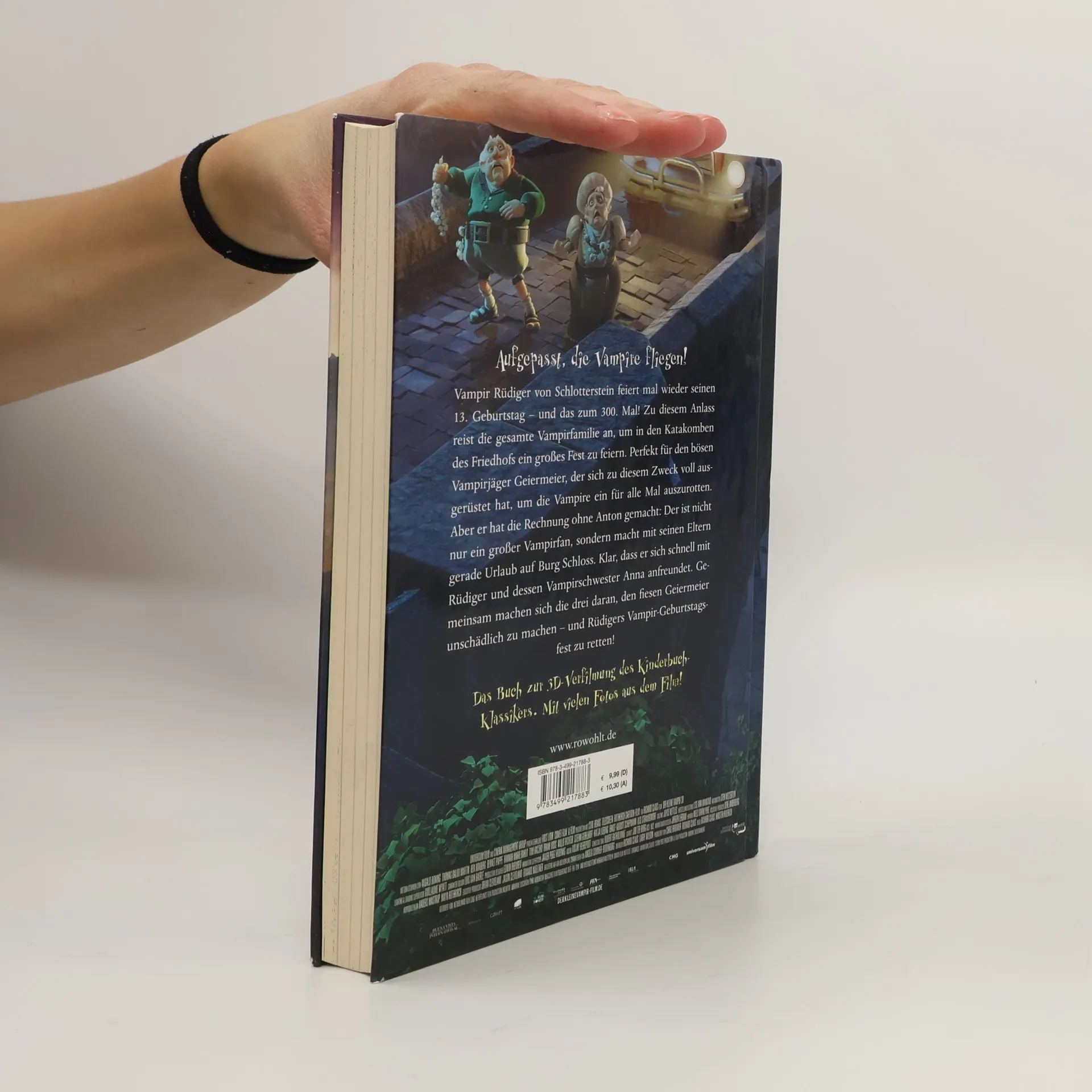 Aufgepasst, die Vampire fliegen! Vampir Rüdiger von Schlotterstein feiert mal wieder seinen 13. Geburtstag – und das zum 300. Mal! Zu diesem Anlass reist die gesamte Vampirfamilie an, um in den Katakomben des Friedhofs ein großes Fest zu feiern. Perfekt für den bösen Vampirjäger Geiermeier, der sich zu diesem Zweck voll ausgerüstet hat, um die Vampire ein für alle Mal auszurotten. Aber er hat die Rechnung ohne Anton gemacht: Der ist nicht nur ein großer Vampirfan, sondern macht mit seinen Eltern gerade Urlaub auf Burg Schloss. Klar, dass er sich schnell mit Rüdiger und dessen Vampirschwester Anna anfreundet. Gemeinsam machen sich die drei daran, den fiesen Geiermeier unschädlich zu machen – und Rüdigers Vampir-Geburtstagsfest zu retten! Das Buch zur 3D-Verfilmung des Kinderbuch-Klassikers. Mit vielen Fotos aus dem Film!