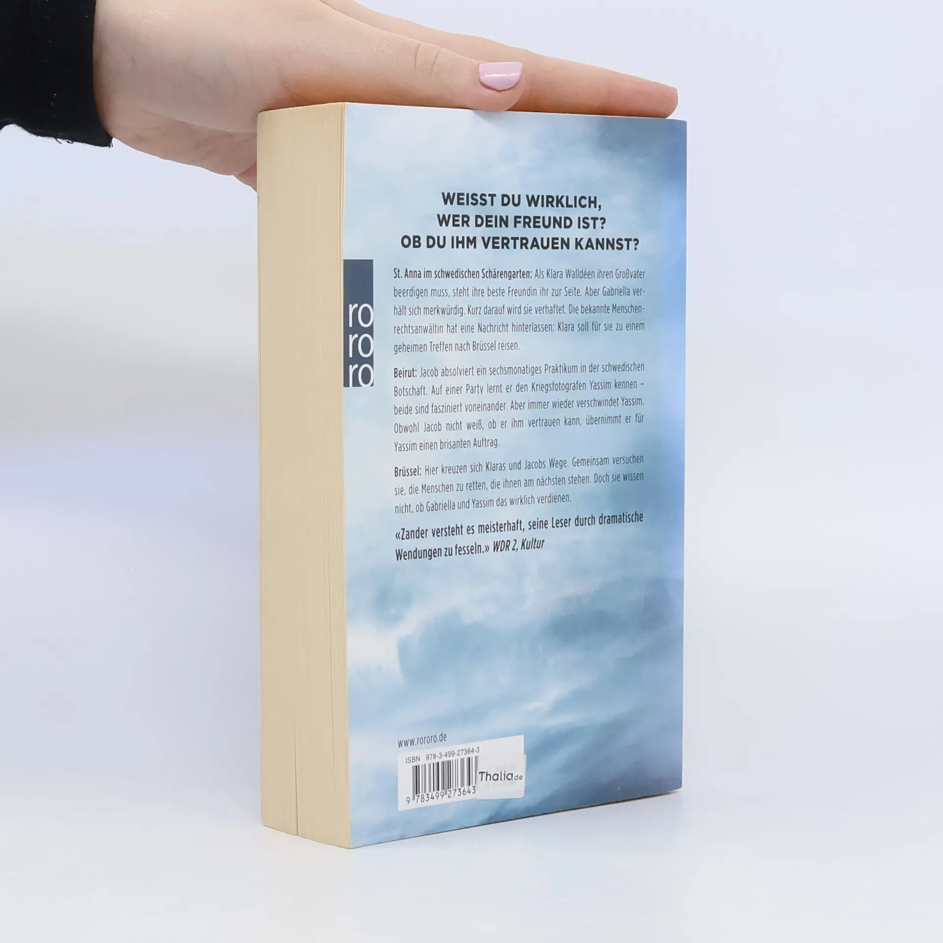 Weißt Du wirklich, wer dein Freund ist? Ob du ihm vertrauen kannst? St. Anna im schwedischen Schärengarten: Als Klara Walldéen ihren Großvater beerdigen muss, steht ihre beste Freundin ihr zur Seite. Aber Gabriella verhält sich merkwürdig. Kurz darauf wird sie verhaftet. Die bekannte Menschenrechtsanwältin hat eine Nachricht hinterlassen: Klara soll für sie zu einem geheimen Treffen nach Brüssel reisen. Beirut: Jacob absolviert ein sechsmonatiges Praktikum in der schwedischen Botschaft. Auf einer Party lernt er den Kriegsfotografen Yassim kennen – beide sind fasziniert voneinander. Aber immer wieder verschwindet Yassim. Obwohl Jacob nicht weiß, ob er ihm vertrauen kann, übernimmt er für Yassim einen brisanten Auftrag. Brüssel: Hier kreuzen sich Klaras und Jacobs Wege. Gemeinsam versuchen sie, die Menschen zu retten, die ihnen am nächsten stehen. Doch sie wissen nicht, ob Gabriella und Yassim das wirklich verdienen.