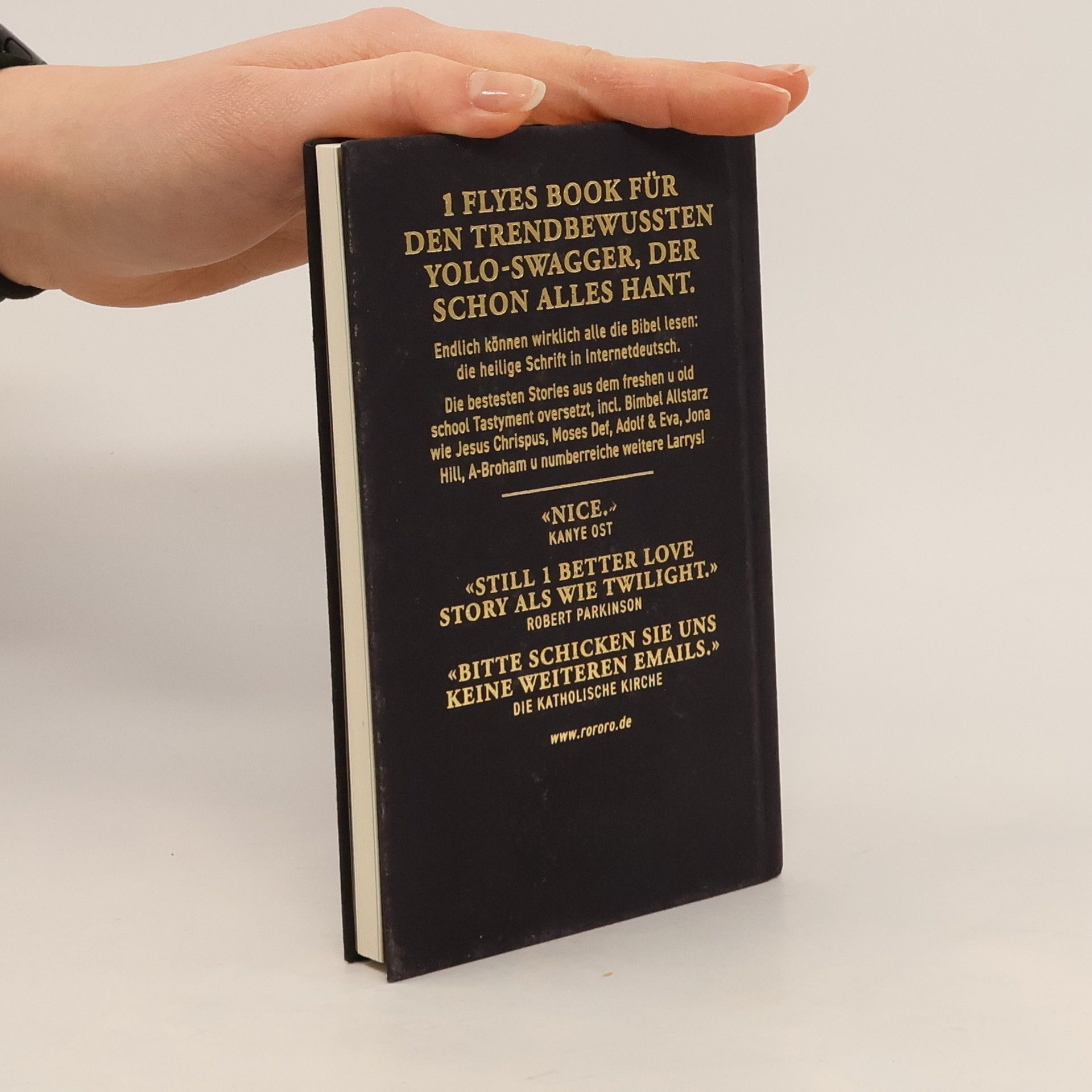 1 flyes Book für den trendbewussten Yolo-Swagger Der Stand-Up-Comedian Shahak Shapira übersetzt die Bibel neu 500 Jahre nach Martin Luthers Thesenanschlag. Die Grundgeschichten der heiligen Schrift überträgt Shapira ins Internetdeutsche: Die bestesten Stories aus dem freshen u old school Tastyment oversetzt, incl. Bimbel Allstarz wie Jesus Chrispus, Moses Def, Adolf & Eva, Jona Hill, A-Broham u numberreiche weitere Larrys! «Nice.» Kanye Ost «Still 1 better love story als wie Twilight.» Robert Parkinson «Bitte schicken Sie uns keine weiteren eMails.» Die katholische Kirche