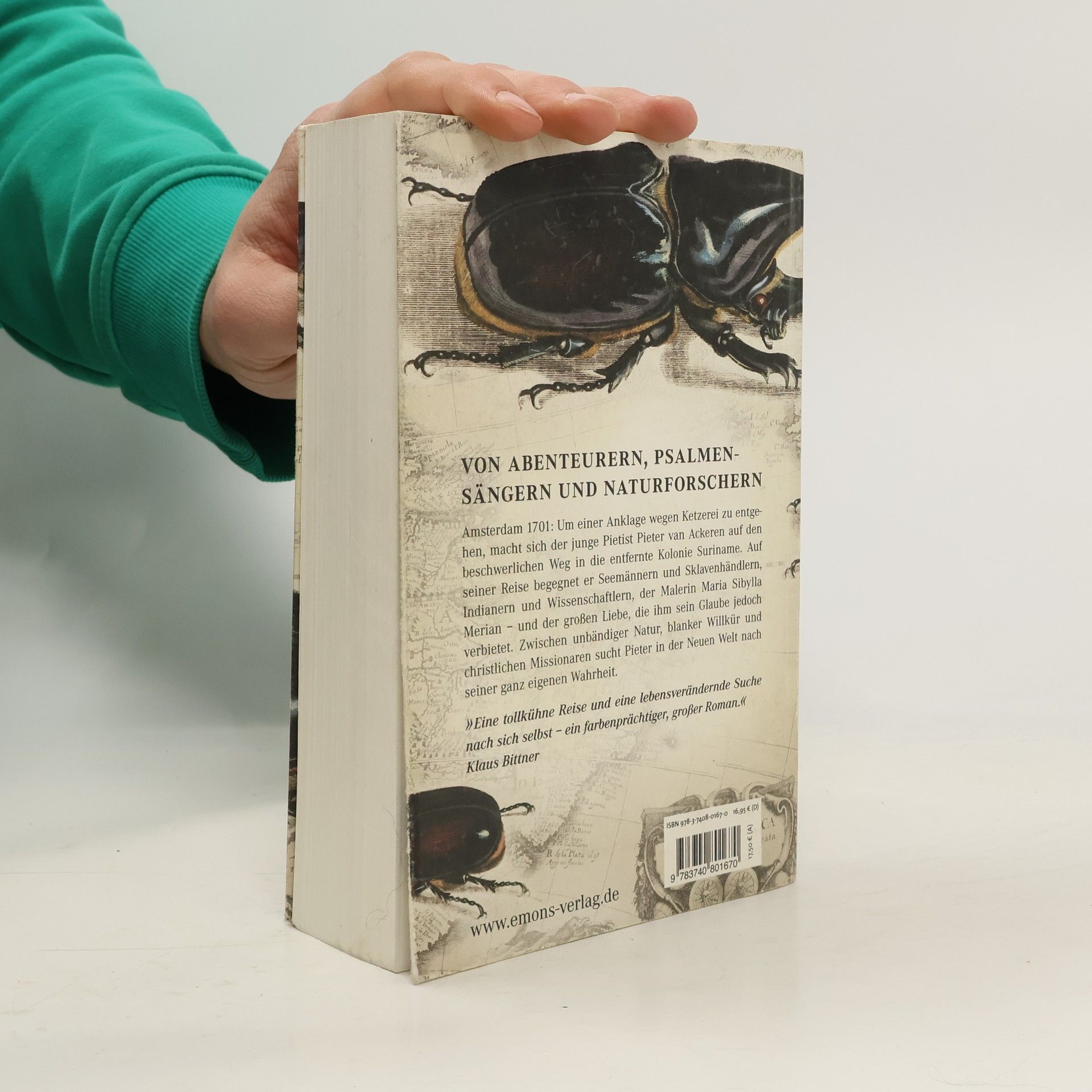 Ein packender historischer Roman. Amsterdam 1701: Um einer Anklage wegen Ketzerei zu entgehen, macht sich der junge Pietist Pieter van Ackeren auf den beschwerlichen Weg in die niederländische Kolonie Suriname. Auf seiner Reise begegnet er Seemännern und Sklavenhändlern, Indianern und Wissenschaftlern, der Malerin Maria Sibylla Merian – und seiner großen Liebe, die ihm sein Glaube jedoch verbietet. Zwischen unbändiger Natur, roher Gewalt und christlichen Missionaren sucht Pieter nach seiner ganz eigenen Wahrheit.