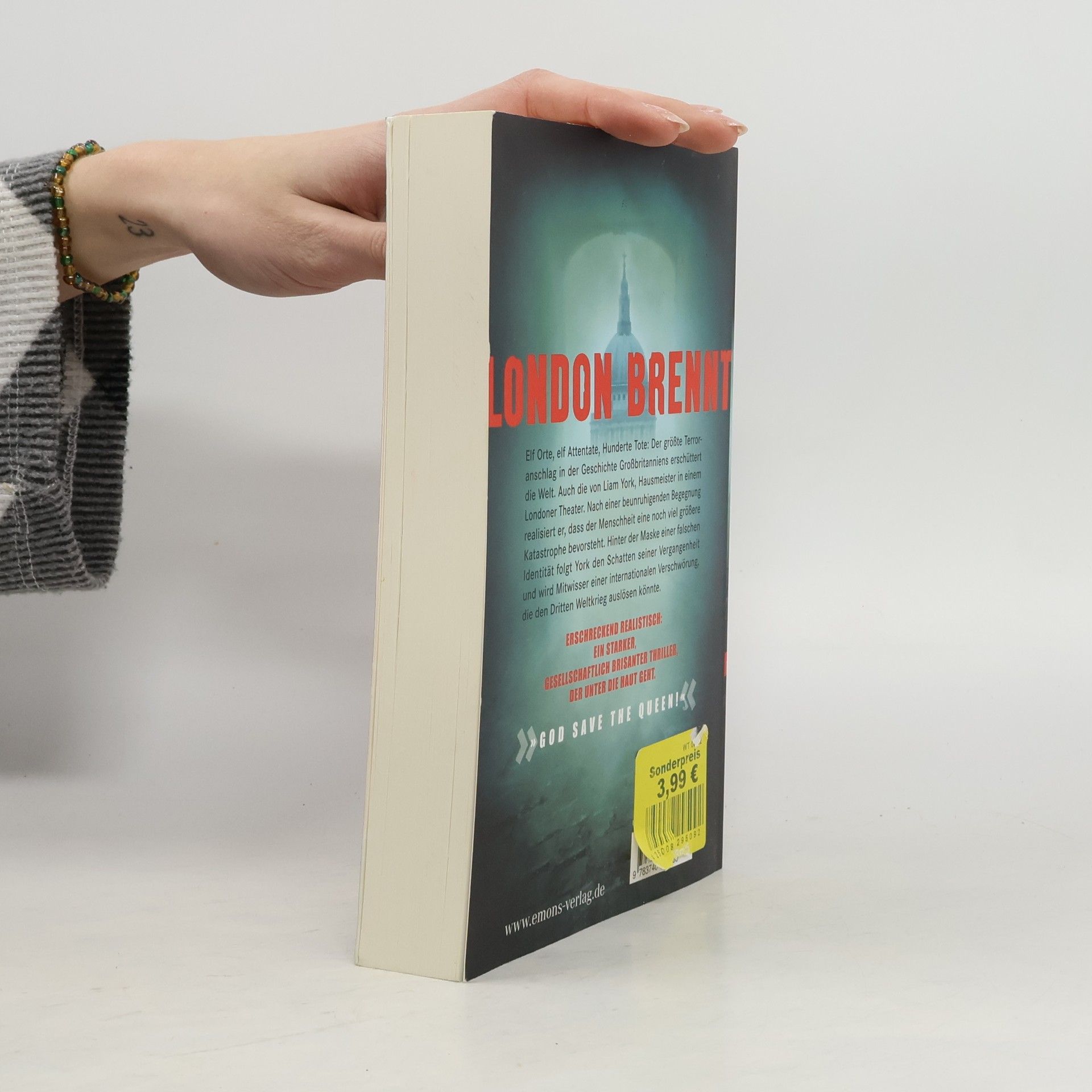 Erschreckend realistisch. Ein starker gesellschaftlich brisaner Thriller der unter die Haut geht. Elf Orte, elf Attentate, Hunderte Tote: Der größte Terroranschlag in der Geschichte Großbritanniens erschüttert die Welt. Auch die von Liam York, Hausmeister in einem Londoner Theater. Nach einer beunruhigenden Begegnung realisiert er: Der Menschheit steht eine noch viel größere Katastrophe bevor. HInter der Maske einer falschen Identität folgt York den Schatten seiner Vergangenheit und wird Mitwisser einer internationalen Verschwörung, die einen Dritten Weltkrieg auslösen könnte.
