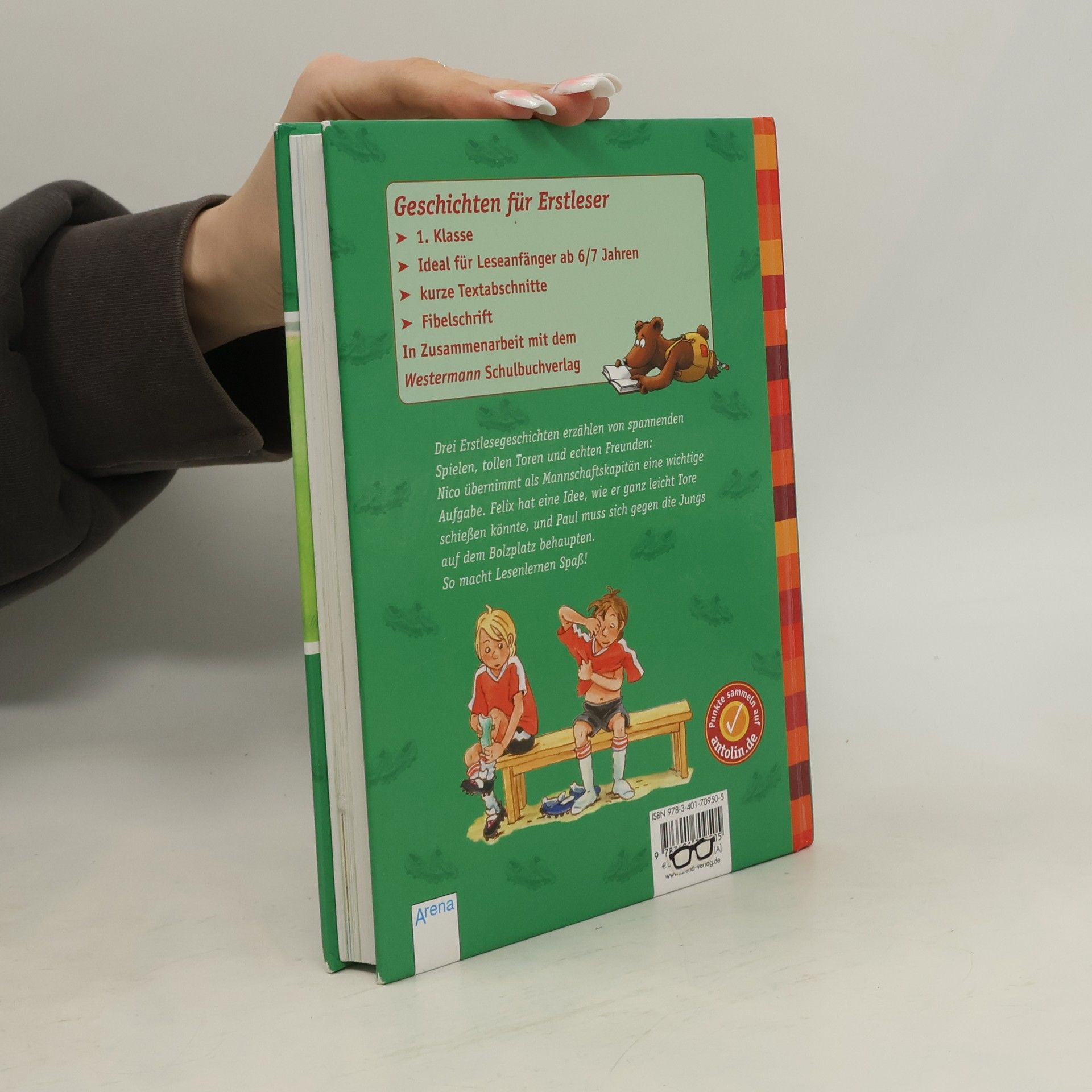 Drei Erstlesegeschichten erzählen von spannenden Spielen, tollen Toren und echten Freunden: Nico übernimmt als Mannschaftskapitän eine wichtige Aufgabe. Felix hat eine Idee, wie er ganz leicht Tore schießen könnte, und Paul muss sich gegen die Jungs auf dem Bolzplatz behaupten. So macht Lesenlernen Spaß!