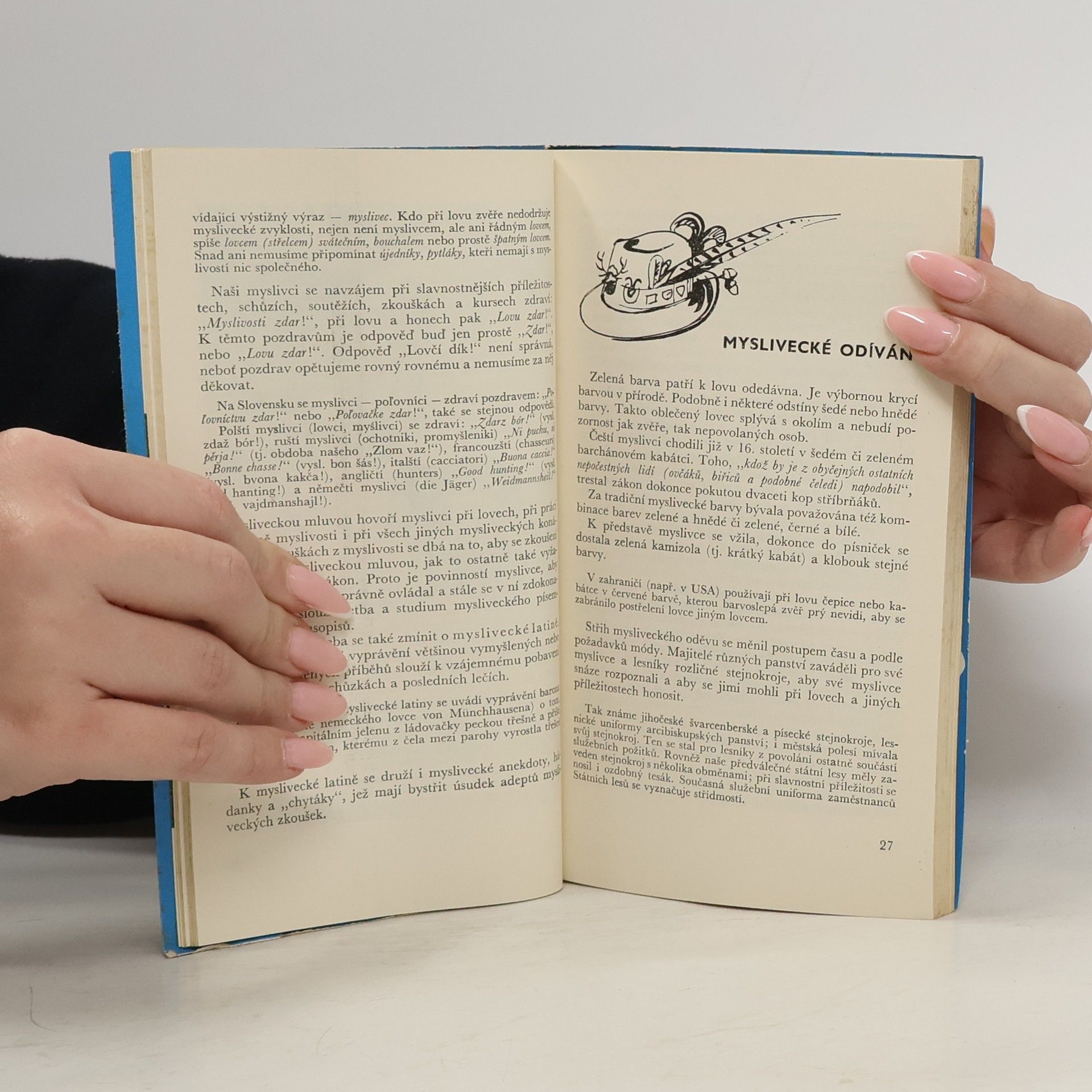 Dnešní myslivost navazuje na ty staleté tradice a zvyklosti, které mají své opodstatnění i v současné době. K těmto zvyklostem patří především povinnosti a vlastnosti myslivce, myslivecká mluva a oděv, lovecké povely, návěštíahlaholy, zvyklosti při lovu a lovecké trofeje. Autoři zachycují i obyčeje při různých mysliveckých akcích (např. poslední leče, přijímání mezi myslivce aj.). Sledují rovněž náboženské tradice v myslivosti, myslivecká kouzla,odraz myslivosti v pověstech, pořekadlech, písních, hudbě a výtvarném umění.