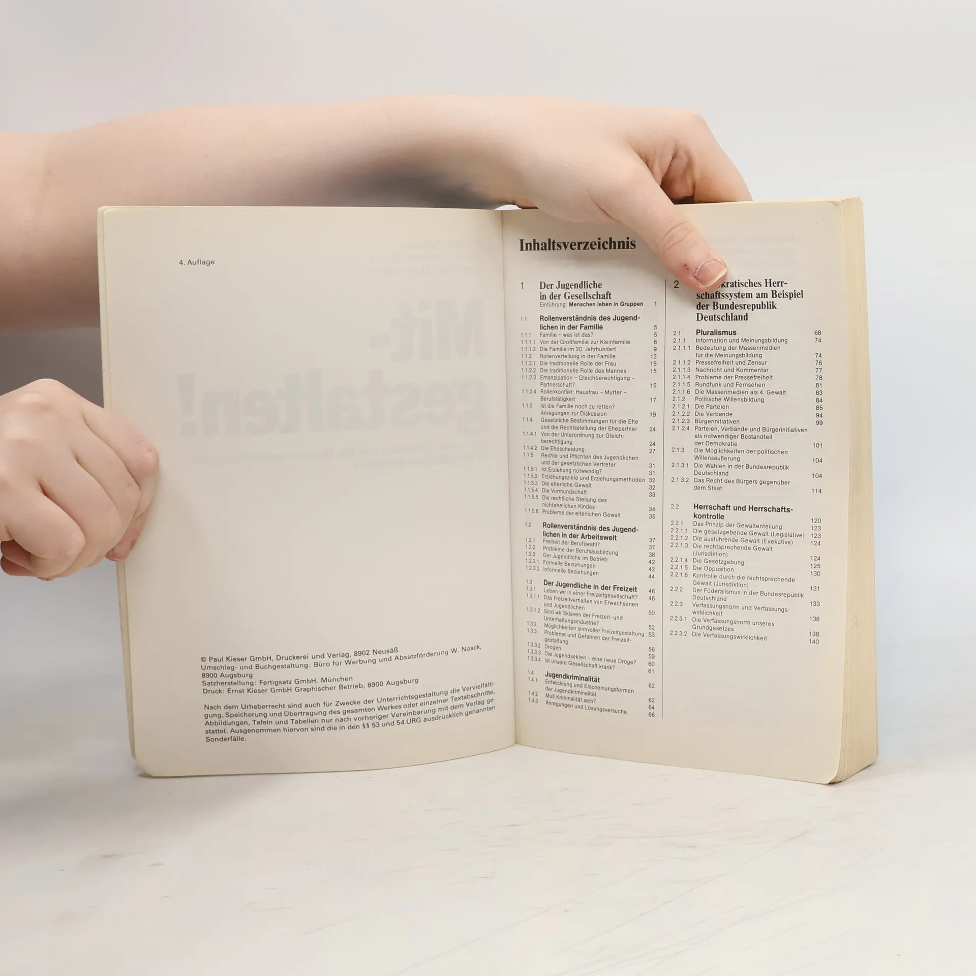 Neuauflage 2018: Einarbeitung der Ergebnisse der Bundestagswahl 2017 Einarbeitung von weiteren Prüfungsfragen zwecks Prüfungsvorbereitung entspricht dem neuen kompetenzorientierten Lehrplan für das Fach Gemeinschaftskunde an Berufsschulen in Baden-Württemberg ist auch bundesweit an beruflichen Schulen einsetzbar Vermittlung der für den Gemeinschaftskunde-Unterricht besonders wichtigen Kompetenzen (Analysekompetenz, politische Urteilskompetenz, politische Handlungskompetenz und kommunikative Kompetenz) Struktur nach Doppelseitenprinzip Einbindung von Methodenkompetenzseiten in die Kapitel, die jeweils anhand konkreter Beispiele erläutert werden ausführliche und anschauliche Einstiegsseiten für die jeweiligen Kapitel und Module mit klarer Darstellung der jeweiligen Ziele und Inhalte mit Wissens- und Kompetenz-Checks am Ende der Kapitel mit modulübergreifenden Aufgaben mit politischer Deutschland-, Europa- und Weltkarte Die drei Hauptkapitel enthalten jeweils drei Module pro Jahr: Junge Menschen in Beruf, Familie und Gesellschaft: Zusammenleben gestalten Junge Menschen im Staat: Demokratische Prozesse mitgestalten Junge Menschen in Europa und der Welt: Sich in Europa und der Welt zurechtfinden und engagieren Zu diesem Lehrbuch sind passende Lehrermaterialien als Download und Printversion erhältlich.