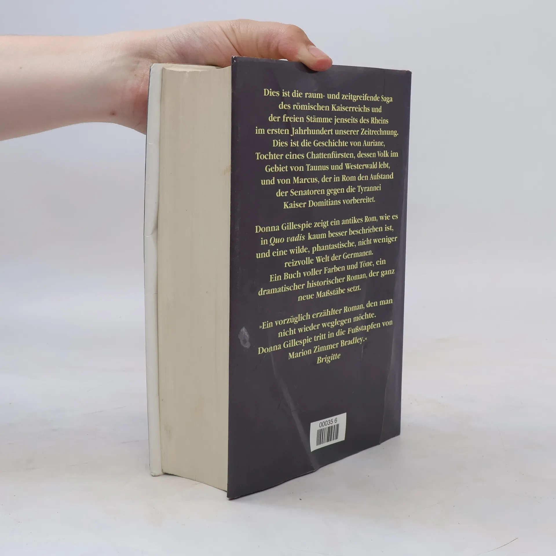 Jenseits von Rhein und Main stehen die römischen Legionen. Auriane, Tochter eines germanischen Chattenfürsten, ist eine große Schwertkämpferin. Ihr war eine bedeutende Zukunft geweissagt worden. Aber beim Kampf gegen die Römer werden die Chatten geschlagen, Auriane gefangen und nach Rom verschleppt. Viele Themen streift die Autorin Donna Gillespie in ihrem großen historischen Roman. Vom aufkeimenden Christentum mit seinen für Römer und Germanen gleichermaßen befremdlichen Sitten über die Traditionen der Priester und Seher in Germanien bis hin zum Alltagsleben im hektischen Rom, der viel zu schnell wachsenden Hauptstadt des Imperiums. Ein Schicksal zwischen zwei völlig verschiedenen Welten.