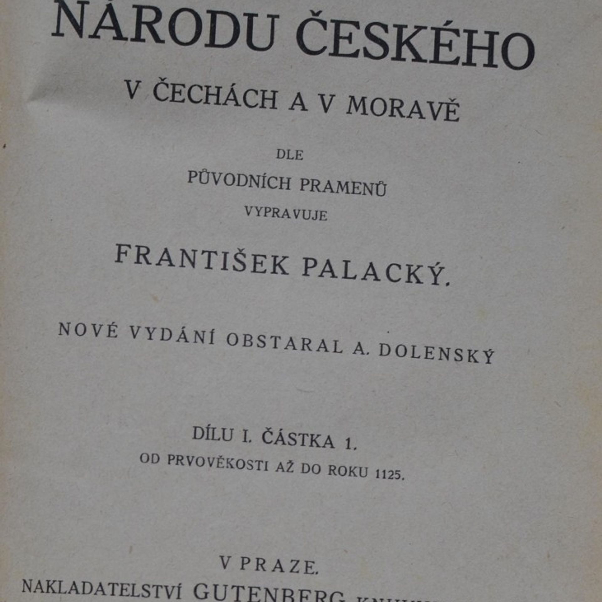 Dějiny národu českého v Čechách a v Moravě Dějiny národu českého v Čechách a v Moravě, sv. I, František Palacký, Antonín Dolenský