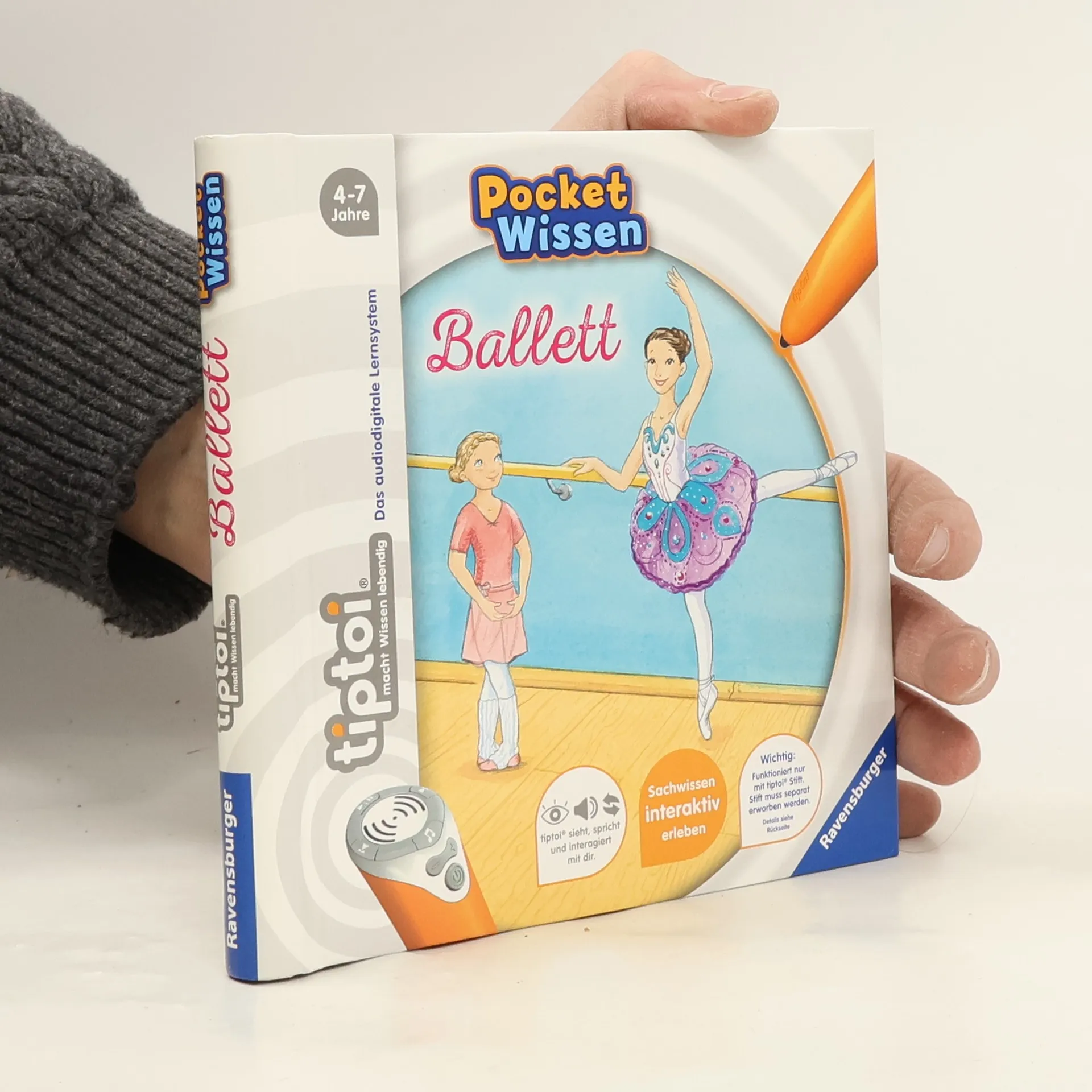 Kompaktes Sachwissen zum Mitnehmen rund um das Thema „Ballett“ Mit „tiptoi Pocket Wissen: Ballett“ erleben Kinder die Magie dieses Tanzes hautnah. Sie erfahren Wissenswertes über seine Entstehung sowie über Positionen und Sprünge, bewundern traumhafte Kostüme und blicken hinter die Kulissen einer Tanzschule. Zum Schluss findet eine Ballettvorführung auf der großen Bühne statt. Die vielen Sounds und Bilder machen diesen Band zum idealen Begleiter für kleine Ballerinen! Ob Pferde und Ponys, Dinosaurier, Ballett oder Feuerwehr, mit der Reihe tiptoi Pocket Wissen können Kinder von 4 - 7 Jahren all ihre Lieblingsthemen entdecken und sammeln. Jeder Band bietet kompaktes Sachwissen mit vielen interessanten Informationen, authentischen Geräuschen und kniffligen Spielen. Der tiptoi-Stift lässt die kindgerecht aufgearbeiteten Sachthemen lebendig werden. So können sich die Kinder spannende Wissensinhalte mit viel Spaß selbständig und interaktiv aneignen. Die abwechslungsreichen Spiele helfen dabei, das gelernte Wissen zu vertiefen. Dank des handlichen Formats ist tiptoi Pocket Wissen ideal für unterwegs, als Geschenk zum Kindergeburtstag oder zum Schmökern zu Hause. So wird Wissen einfach überall lebendig! tiptoi-Stift nicht enthalten. Muss separat erworben werden.