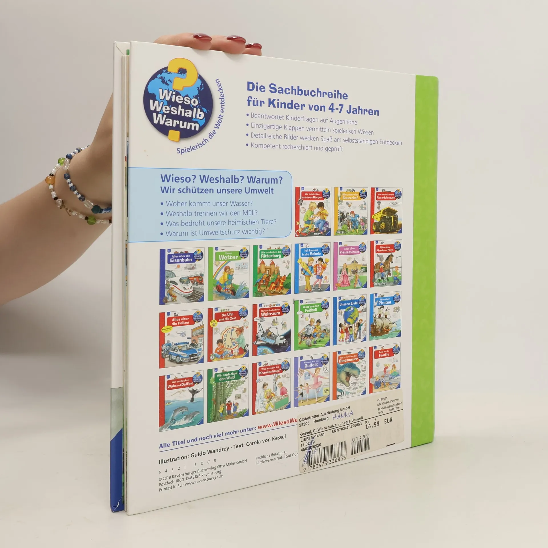 Warum ist unsere Erde so einzigartig? Was bedroht sie? Und was kann jeder Einzelne für die Umwelt und ihren Schutz tun? Anhand alltagnaher Beispiele erklärt dieses Buch den Wasserkreislauf auf der Erde, woher unser Strom kommt und was mit unserem Müll passiert. Dabei gibt es viele Anregungen, wie Kinder ab 4 Jahren und ihre Eltern als Naturschützer aktiv werden können. Denn Umweltschutz geht uns alle an und ist gar nicht schwer! Wieso? Weshalb? Warum? Die Sachbuchreihe für Kinder von 4–7 Jahren Jeden Tag entdecken Kinder etwas Neues – da kommen viele Fragen auf. Warum sind die Dinosaurier ausgestorben? Wo ist die Sonne in der Nacht? Wozu brauchen wir das Blut? Die beliebte Sachbuchreihe Wieso? Weshalb? Warum? gibt Kindern Antworten auf Augenhöhe. Dabei werden die unterschiedlichsten Themen aus der Alltags- und Interessenswelt der Kinder altersgerecht und mit viel Liebe zum Detail unter die Lupe genommen. Detailreiche Bilder, verständliche Sachtexte und überraschende Klappen, die Bewegungen oder Abläufe veranschaulichen und hinter die Dinge blicken lassen, ermöglichen Kindern, sich ihre Themen selbst zu erschließen. Der Spaß am eigenhändigen Entdecken, die liebevolle Umsetzung und die qualitativ hochwertige Ausstattung garantieren langanhaltende Freude an jedem einzelnen Buch.