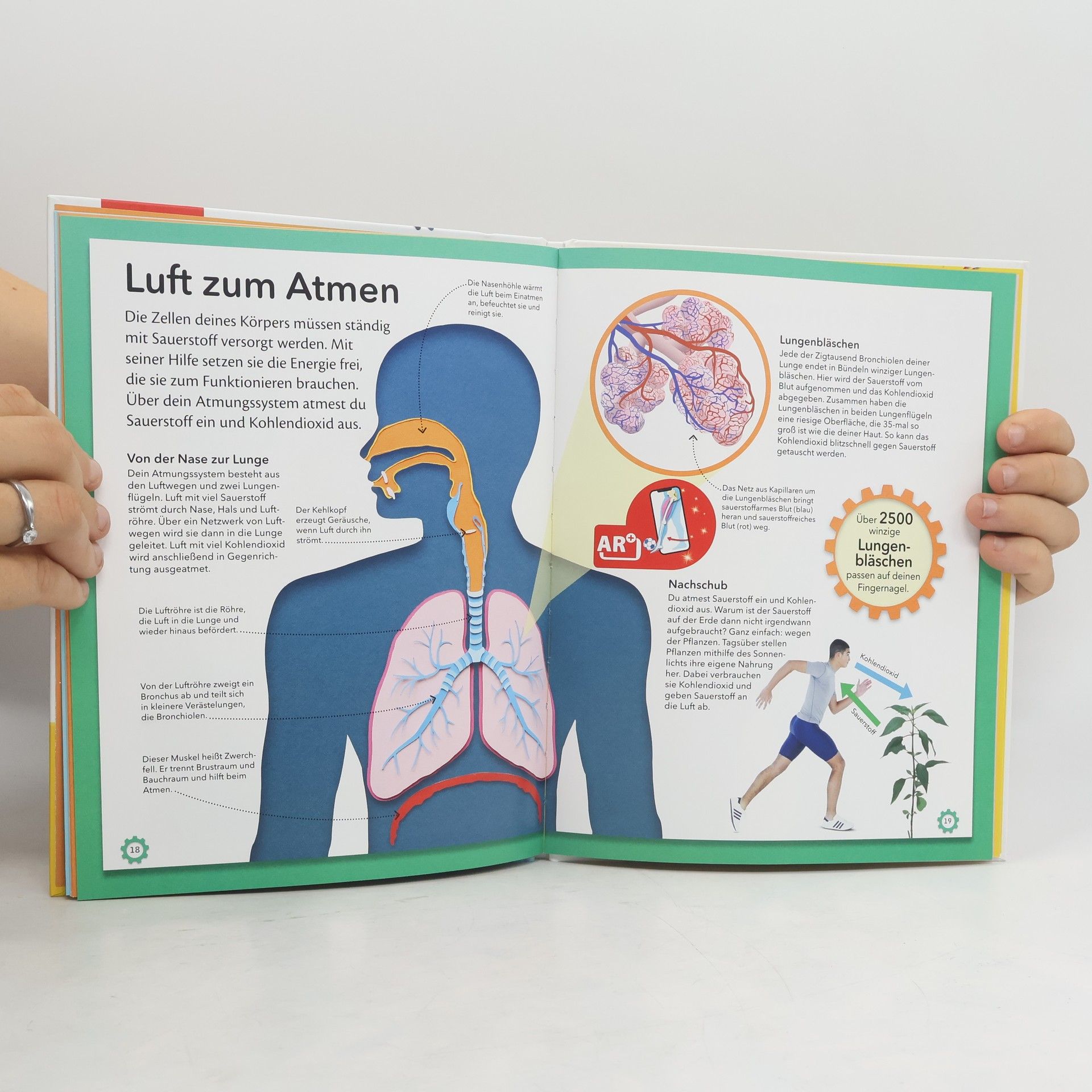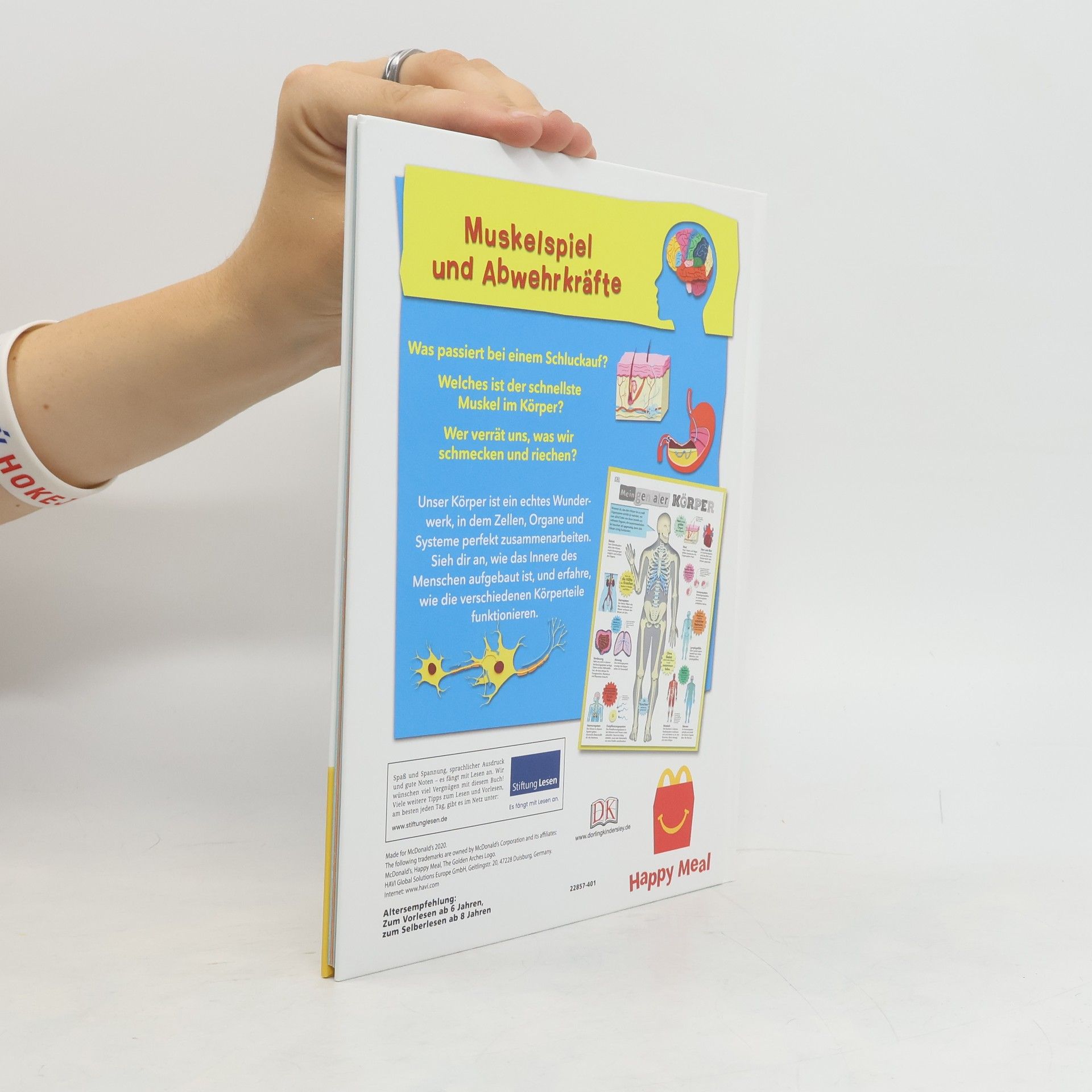 Ausgezeichnet als Wissensbuch des Jahres 2018 von Bild der Wissenschaft! Seid ihr bereit für eine spannende Entdeckungstour durch den menschlichen Körper? Dieses Buch nimmt die wichtigsten Organe und Funktionsweisen genau unter die Lupe – von den kleinsten Zellen über verschiedene Gewebe bis zu Gehirn, Herz und Lunge. Erforscht das wohl faszinierendste Wunderwerk der Natur! Was passiert, wenn wir schlafen? Warum müssen wir niesen? Wie wächst ein Baby im Bauch? Einzigartige plastische Illustrationen gewähren euch fantastische Einblicke in das menschliche Innere und zeigen euch, wie verschiedene Körperteile und Organe als System zusammenarbeiten. So erfahrt ihr, wie die Muskeln, Gelenke und Knochen im Bein zusammenwirken, wenn ihr einen Fußball schießt oder wie euer Gehirn funktioniert. Um euer Wissen zu festigen, gibt es außerdem ein riesiges Poster, mit dem ihr euch die gelernten Fakten nochmal visualisieren könnt. Wie gut ihr über den menschlichen Körper Bescheid wisst, könnt ihr anschließend in einem kniffligen Körper-Quiz testen. Hier bekommt ihr Wissen und Spaß in einem Paket! Dieses Buch ist bei Antolin. de verfügbar.