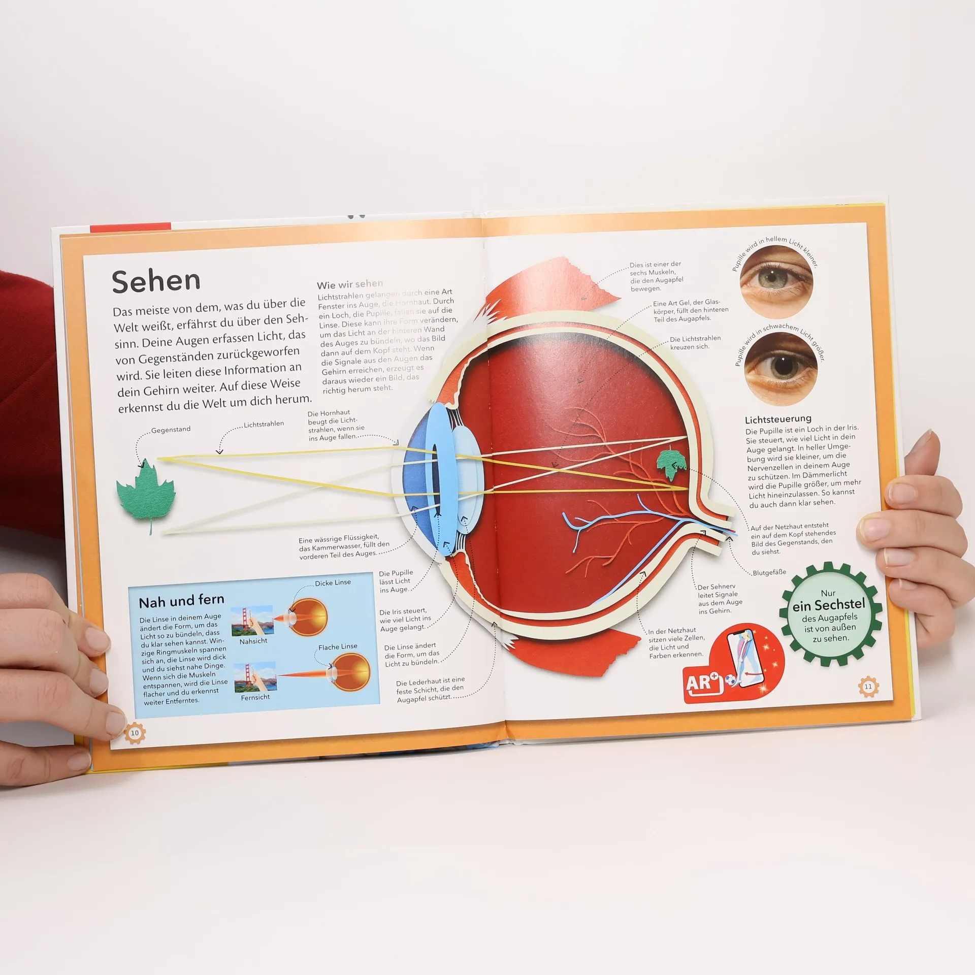 Ausgezeichnet als Wissensbuch des Jahres 2018 von Bild der Wissenschaft! Seid ihr bereit für eine spannende Entdeckungstour durch den menschlichen Körper? Dieses Buch nimmt die wichtigsten Organe und Funktionsweisen genau unter die Lupe – von den kleinsten Zellen über verschiedene Gewebe bis zu Gehirn, Herz und Lunge. Erforscht das wohl faszinierendste Wunderwerk der Natur! Was passiert, wenn wir schlafen? Warum müssen wir niesen? Wie wächst ein Baby im Bauch? Einzigartige plastische Illustrationen gewähren euch fantastische Einblicke in das menschliche Innere und zeigen euch, wie verschiedene Körperteile und Organe als System zusammenarbeiten. So erfahrt ihr, wie die Muskeln, Gelenke und Knochen im Bein zusammenwirken, wenn ihr einen Fußball schießt oder wie euer Gehirn funktioniert. Um euer Wissen zu festigen, gibt es außerdem ein riesiges Poster, mit dem ihr euch die gelernten Fakten nochmal visualisieren könnt. Wie gut ihr über den menschlichen Körper Bescheid wisst, könnt ihr anschließend in einem kniffligen Körper-Quiz testen. Hier bekommt ihr Wissen und Spaß in einem Paket! Dieses Buch ist bei Antolin. de verfügbar.