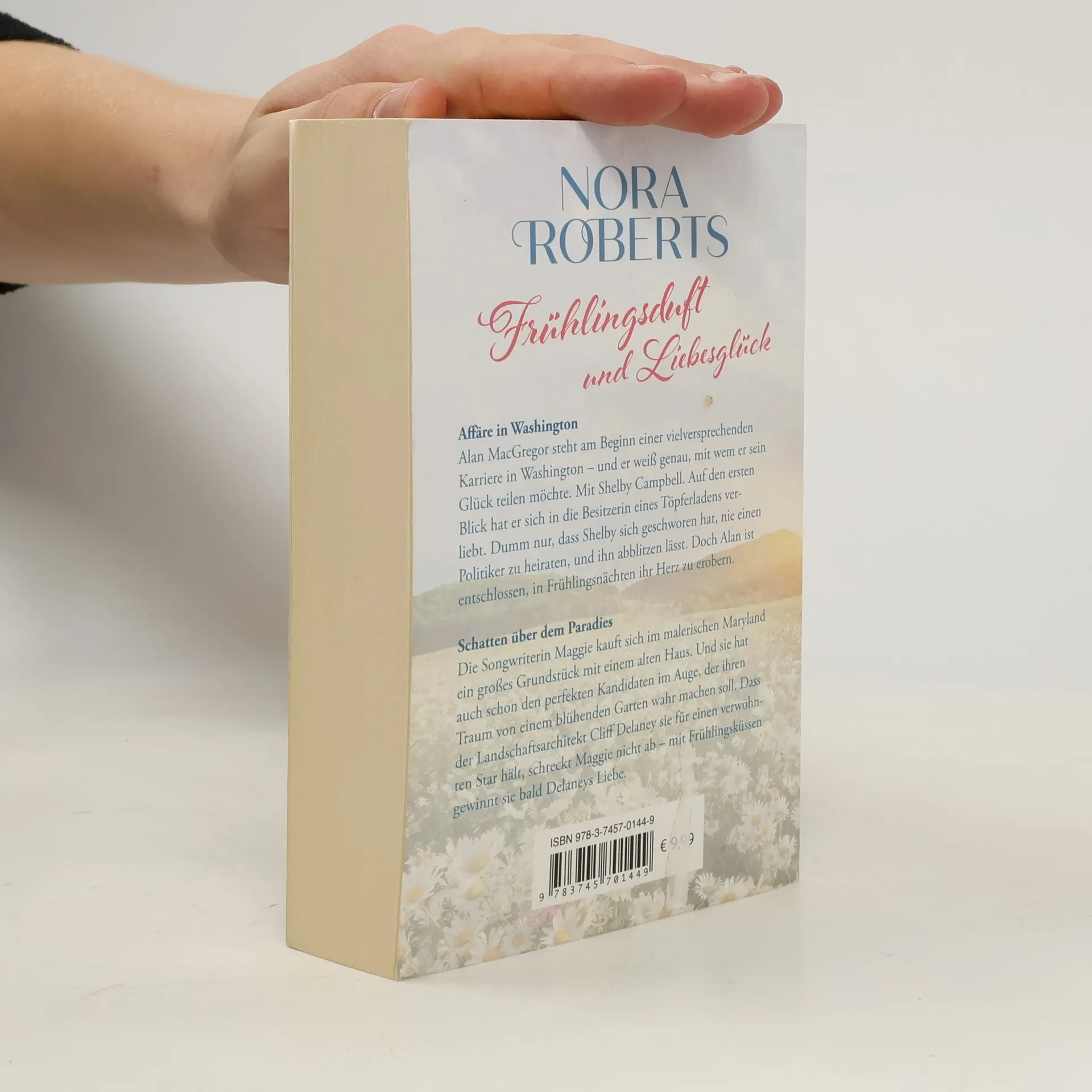 Affäre in Washington Alan MacGregor steht am Beginn einer vielversprechenden Karriere in Washington - und er weiß genau, mit wem er sein Glück teilen möchte. Mit Shelby Campbell. Auf den ersten Blick hat er sich in die Besitzerin eines Töpferladens verliebt. Dumm nur, dass Shelby sich geschworen hat, nie einen Politiker zu heiraten und ihn abblitzen lässt. Doch Alan ist entschlossen, in Frühlingsnächten ihr Herz zu erobern. Schatten über dem Paradies Die Songwriterin Maggie kauft sich im malerischen Maryland ein großes Grundstück mit einem alten Haus. Und sie hat auch schon den perfekten Kandidaten im Auge, der ihren Traum von einem blühenden Garten wahr machen soll. Dass der Landschaftsarchitekt Cliff Delaney sie für einen verwöhnten Star hält, schreckt Maggie nicht ab - mit Frühlingsküssen gewinnt sie bald Delaneys Liebe. Aber plötzlich legen sich Schatten über Maggies neu gefundenes Paradies …