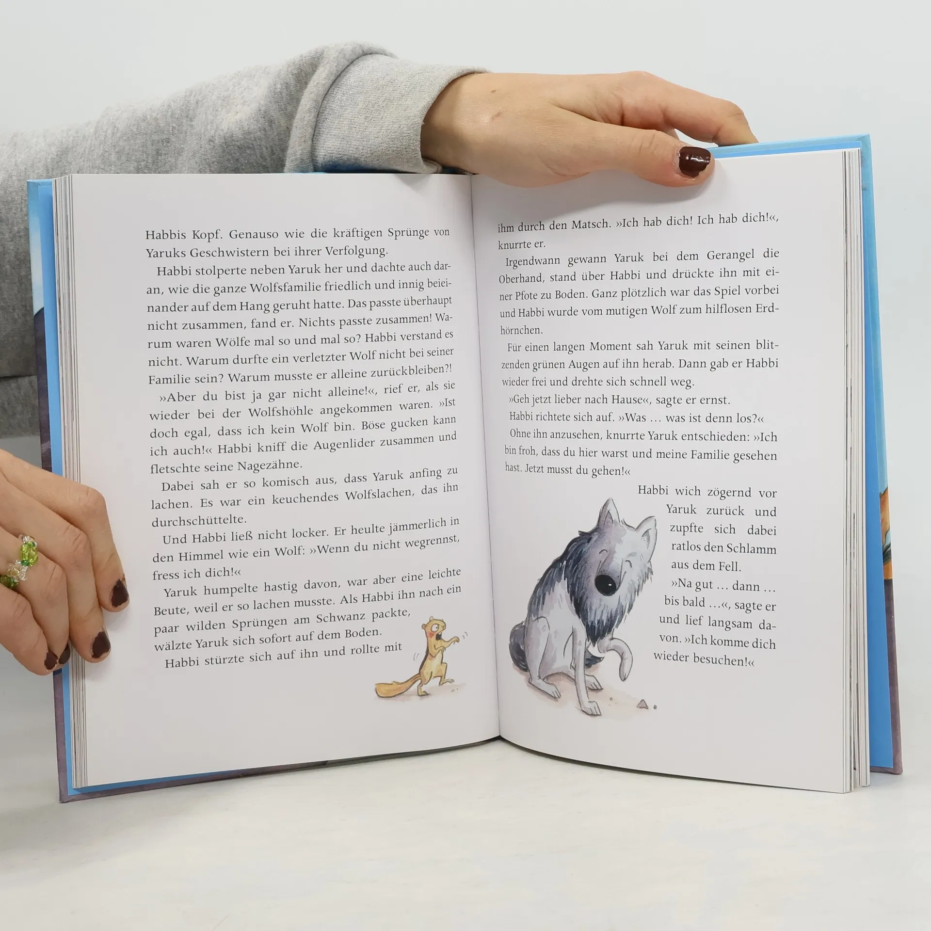 Außergewöhnliche Freundschaftsgeschichte zwischen einem Erdhörnchen und einem Wolf. Für Jungen und Mädchen ab 6.Erdhörnchen Habbi ist mit einem Wolf zusammengeprallt, dem größten Feind der Erdhörnchen! Doch statt sich auf ihn zu stürzen, blinzelt der Wolf ihn nur kraftlos an. Er scheint schwer verletzt zu sein. Wie könnte Habbi ihn da einfach allein lassen? Täglich versorgt er ihn mit Futter und nach und nach freunden die beiden sich an. Bis ihre Freundschaft auf eine harte Probe gestellt wird ... [Quelle: KNO]