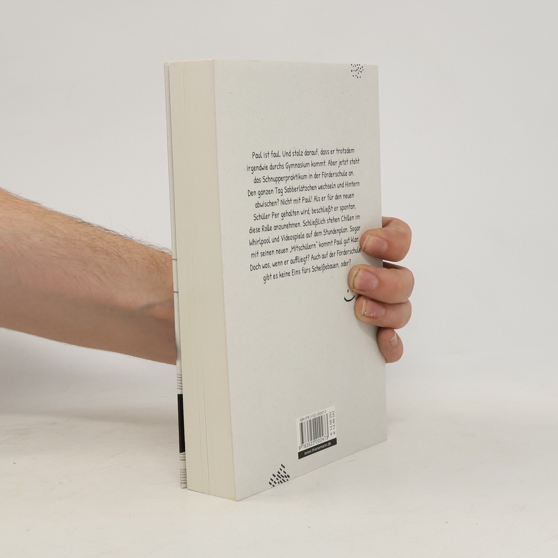 Paul ist faul. Und stolz darauf, dass er trotzdem irgendwie durchs Gymnasium kommt. Aber jetzt steht das Schnupperpraktikum in der Förderschule an. Den ganzen Tag Sabberlätzchen wechseln und Hintern abwischen? Nicht mit Paul! Als er für den neuen Schüler Per gehalten wird, beschließt er spontan, diese Rolle anzunehmen. Schließlich stehen Chillen im Whirlpool und Videospiele auf dem Stundenplan. Sogar mit seinen neuen "Mitschülern" kommt Paul gut klar. Doch was, wenn er auffliegt? Auch auf der Förderschule gibt es keine Eins fürs Scheißebauen, oder?