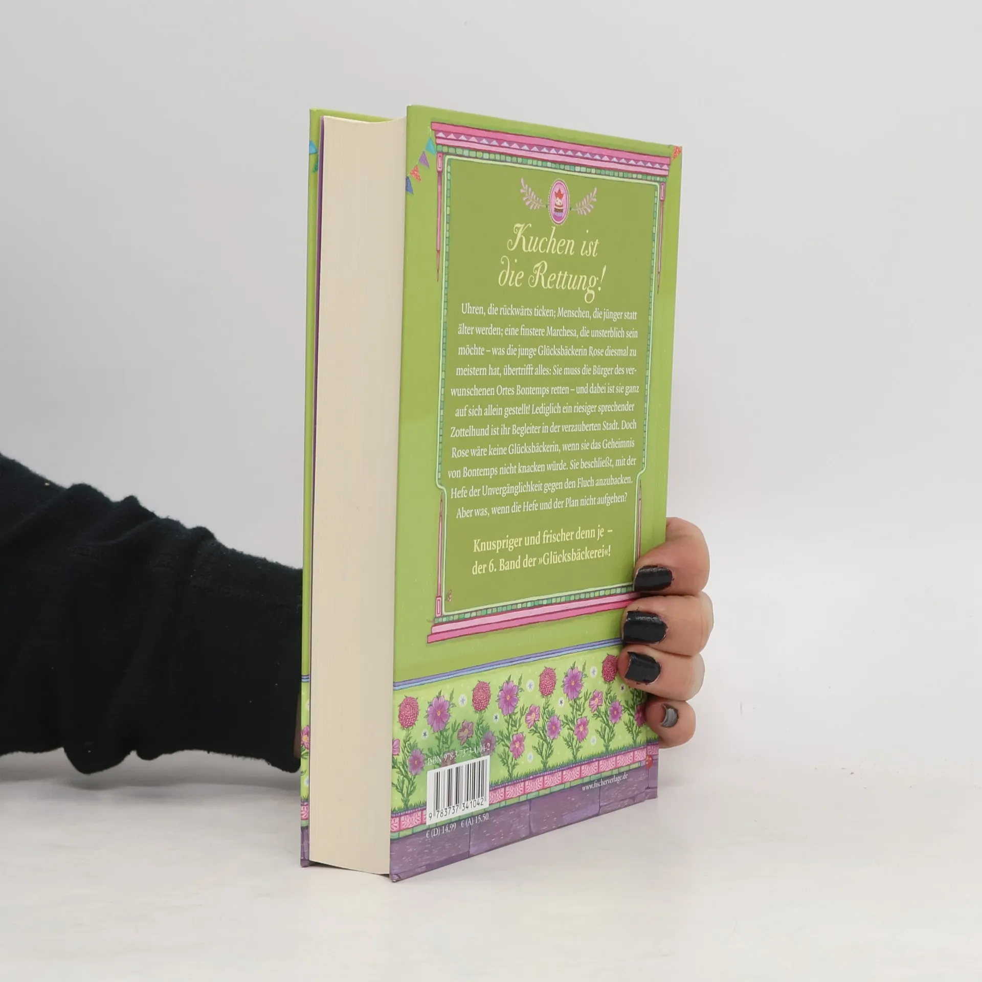 Rose und ihre Familie haben ein Geheimnis: In ihrer Glücksbäckerei backen sie mit Hilfe eines alten Familienbackbuchs magische Kuchen, Torten und Plätzchen. In ihrem sechsten Abenteuer bekommt Glücksbäckerin Rose einen ganz besonderen Begleiter an die Seite gestellt: einen gutmütigen Zottelhund. Dieser vierbeinige Hüter des magischen Rezeptbuchs führt Rose in die kanadische Wildnis, wo es in einem abgelegenen Städtchen ein rätselhaftes Problem gibt: Die Menschen altern hier rückwärts. Und Rose gleich mit – falls sie nicht schnell ein leckeres magisches Gegenrezept findet! Für die junge Glücksbäckerin, die unter den Augen des Hundes ihr Glücksbäckerdiplom verteidigen muss, beginnt ein Wettlauf gegen die Zeit – und für die Leser eine Reise in eine Welt voller magischer Muffins, Kuchen und Kekse. Mmmhh ... Mit zauberhaft glitzerndem Einband und liebevoll verzierenden Vignetten – denn das Auge nascht mit! Alle Bände über ›Die Glücksbäckerei‹: Band 1: Das magische Rezeptbuch Band 2: Die magische Prüfung Band 3: Die magische Verschwörung Band 4: Die magische Verwandlung Band 5: Die magische Rettung Band 6: Die magische Zeit Band 7: Das magische Fest Band 8: Die magische Schule Band 9: Die magischen Zwillinge