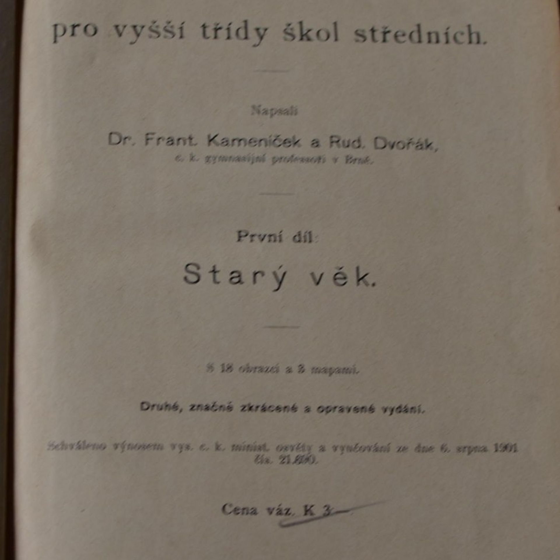 Všeobecný dějepis pro vyšší třídy škol středních. 1. díl, Starý věk, František Kameníček, Rudolf Dvořák