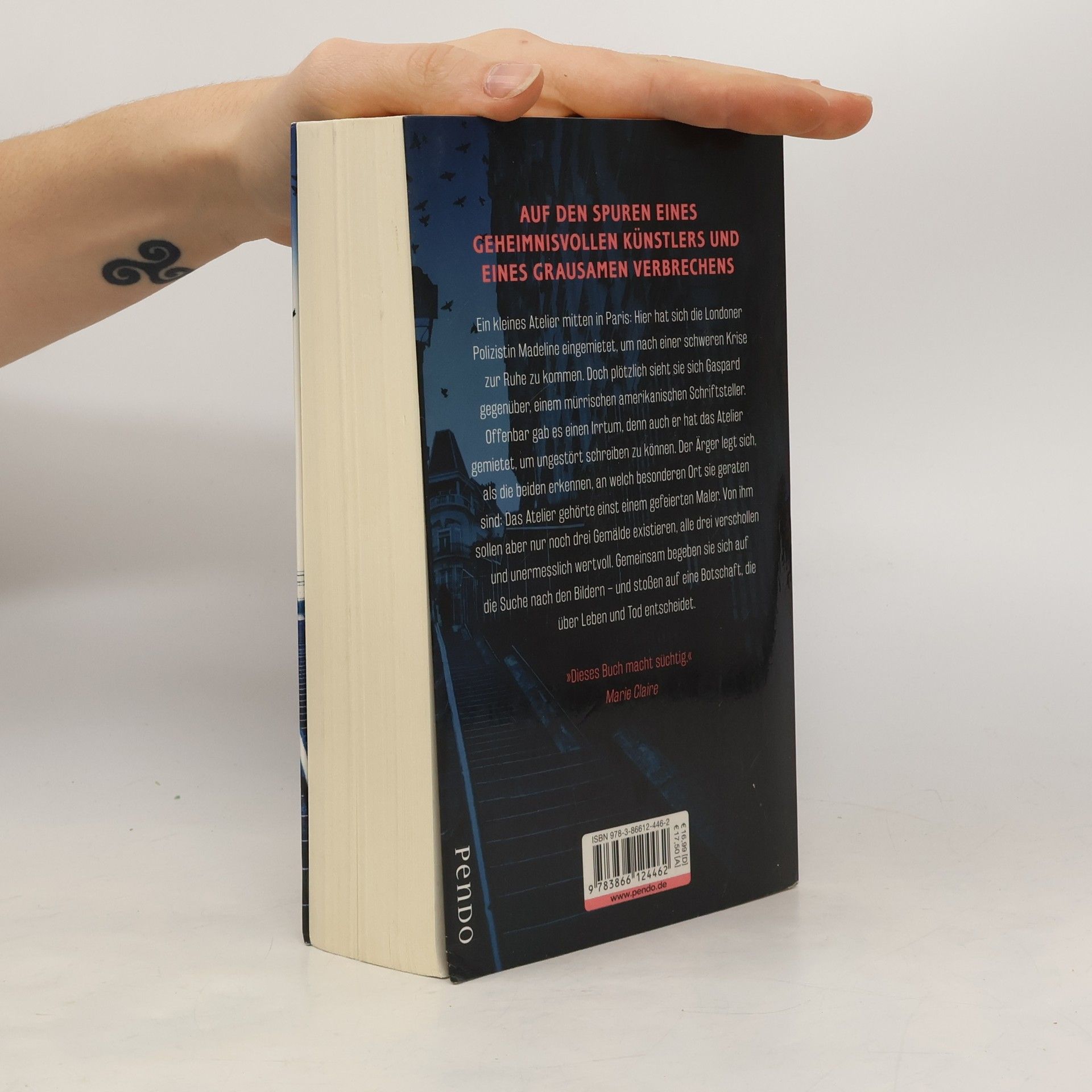Ein abgelegenes kleines Atelier am Ende einer Allee, mitten in Paris: Hier hat sich die Londoner Polizistin Madeline eingemietet, um eine Weile abzuschalten. Doch plötzlich sieht sie sich Gaspard gegenüber, einem mürrischen amerikanischen Schriftsteller. Offenbar gab es einen Irrtum, denn auch er hat das Atelier gemietet, um in Ruhe schreiben zu können. Der Ärger legt sich, als die beiden erkennen, an welch besonderen Ort sie geraten sind. Das Atelier gehörte einst einem gefeierten Maler, von dem aber nur noch drei Gemälde existieren sollen – alle drei verschollen und unermesslich wertvoll. Als sie sich gemeinsam auf die Suche nach den Bildern begeben, wird ihnen schnell klar, dass den Maler ein grausames Geheimnis umgibt … Für Madeline und Gaspard beginnt eine spannende Jagd, die sie von Paris nach New York führt und sie nicht nur mit ungeahnten menschlichen Abgründen, sondern auch mit ihren eigenen Dämonen konfrontiert.