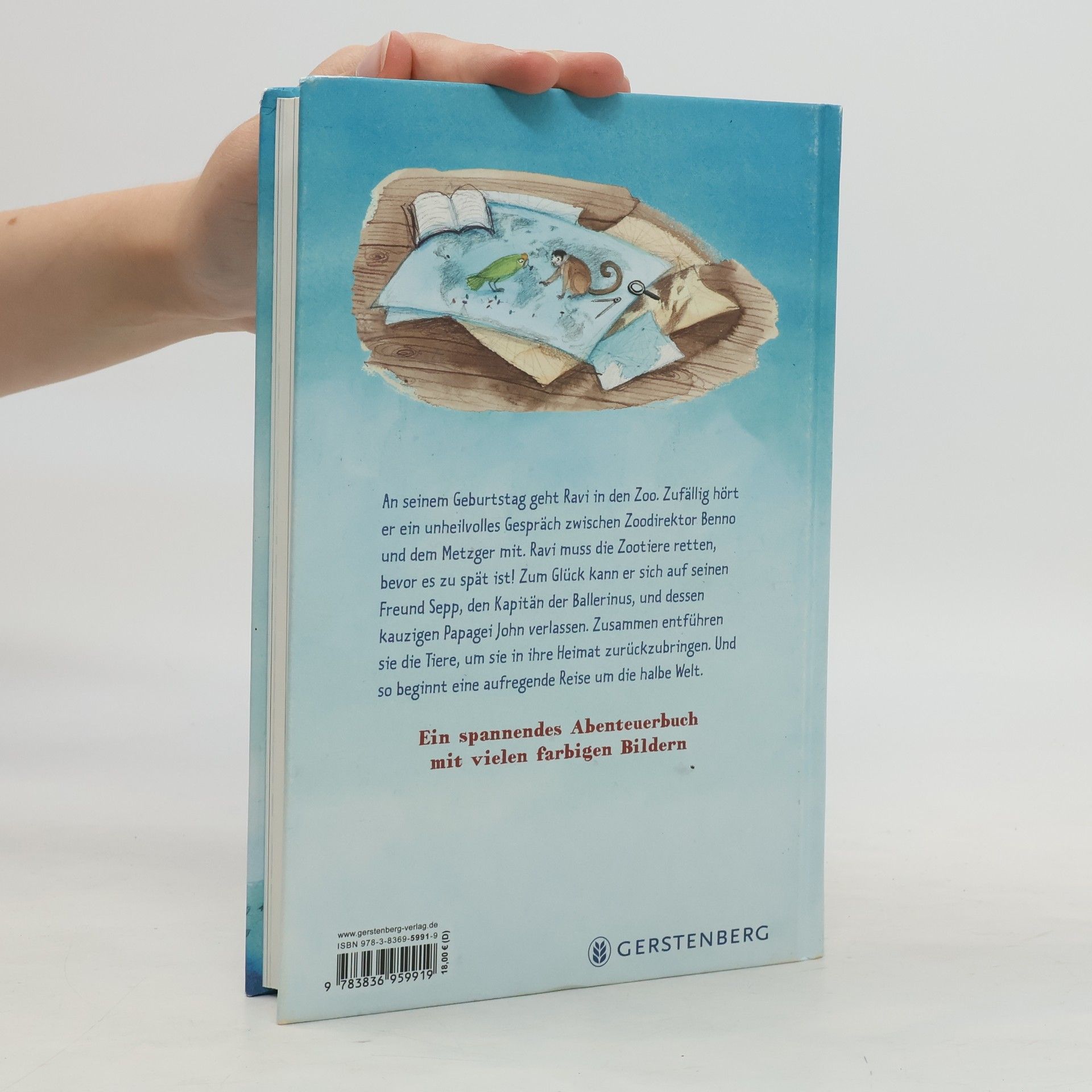 Zum Geburtstag bekommt Ravi eine Jahreskarte für Bennos Zoo geschenkt. Merkwürdig, von diesem Zoo hatte er noch gar nichts gehört! Als der Junge unbeabsichtigt ein Gespräch zwischen dem Metzger und Zoodirektor Benno belauscht, schwant ihm Böses. Er muss die Tiere in Sicherheit bringen! Zum Glück kann Ravi sich auf seinen Freund Sepp, den Kapitän der Ballerinus, und dessen kauzigen Papagei John verlassen. Zusammen entführen sie Elefant Kareltje, Äffchen Oskar, Löwe Hans und all die anderen Tiere. Ravi verspricht, jedes von ihnen nach Hause zu bringen. Und so beginnt eine aufregende Reise um die halbe Welt. Das spannende Abenteuerbuch mit zahlreichen farbigen Bildern von Linde Faas ist ein wunderbarer Schmöker für tierliebe Jungen und Mädchen.