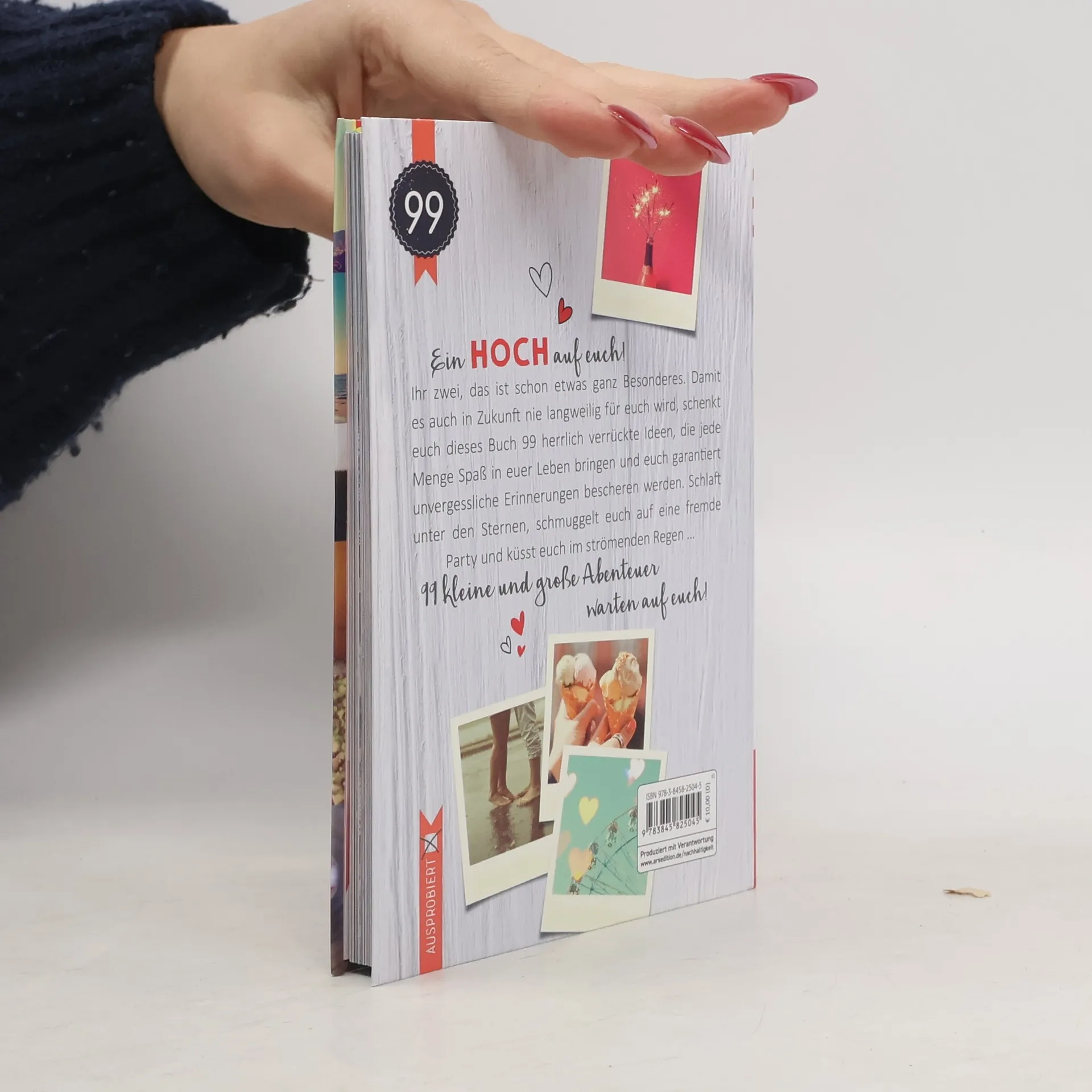 Tolle Ideen für ein noch bunteres Leben zu zweit Sternschnuppen zählen, romantische Küsse auf einem Riesenrad tauschen oder an einer Weinwanderung teilnehmen - dieses Buch bietet euch 99 Ideen von romantisch bis herrlich verrückt, die ihr zwei einfach einmal ausprobieren solltet. Kästchen zum Abhaken und Platz für eigene kleine Anekdoten zum Eintragen verwandeln dieses Buch in eine wunderschöne Erinnerung an alle großen und kleinen Abenteuer, die man gemeinsam bestanden hat. Ein tolles Geschenk für alle Paare – egal ob frisch verliebt oder längst verheiratet. Für unvergessliche Erinnerungen: Wundervolle Anregungen für ein bisschen weniger Alltag und ein bisschen mehr Herzklopfen Malt euch euer Leben bunt: 96 Seiten voller unterhaltsamer Kurztexte und passender Fotos in moderner Gestaltung Mitmachbuch: Kästchen zum Abhaken und Platz für eigene Erinnerungen Praktisches Format: Passt leicht in jede Tasche und ist so immer dabei, mit Lesebändchen und Softcover Originelles Geschenk: Ob für das befreundete Pärchen zur Hochzeit, für die Lieblingskollegin zum Junggesellinnenabschied, für den Schatz zum Valentinstag oder einfach so - mit diesem Buch schenkt man Freude Worauf wartet ihr? Diese Bucket List bringt Abwechslung in den Beziehungsalltag, sorgt für jede Menge Geschichten, die man später immer wieder gerne erzählt.