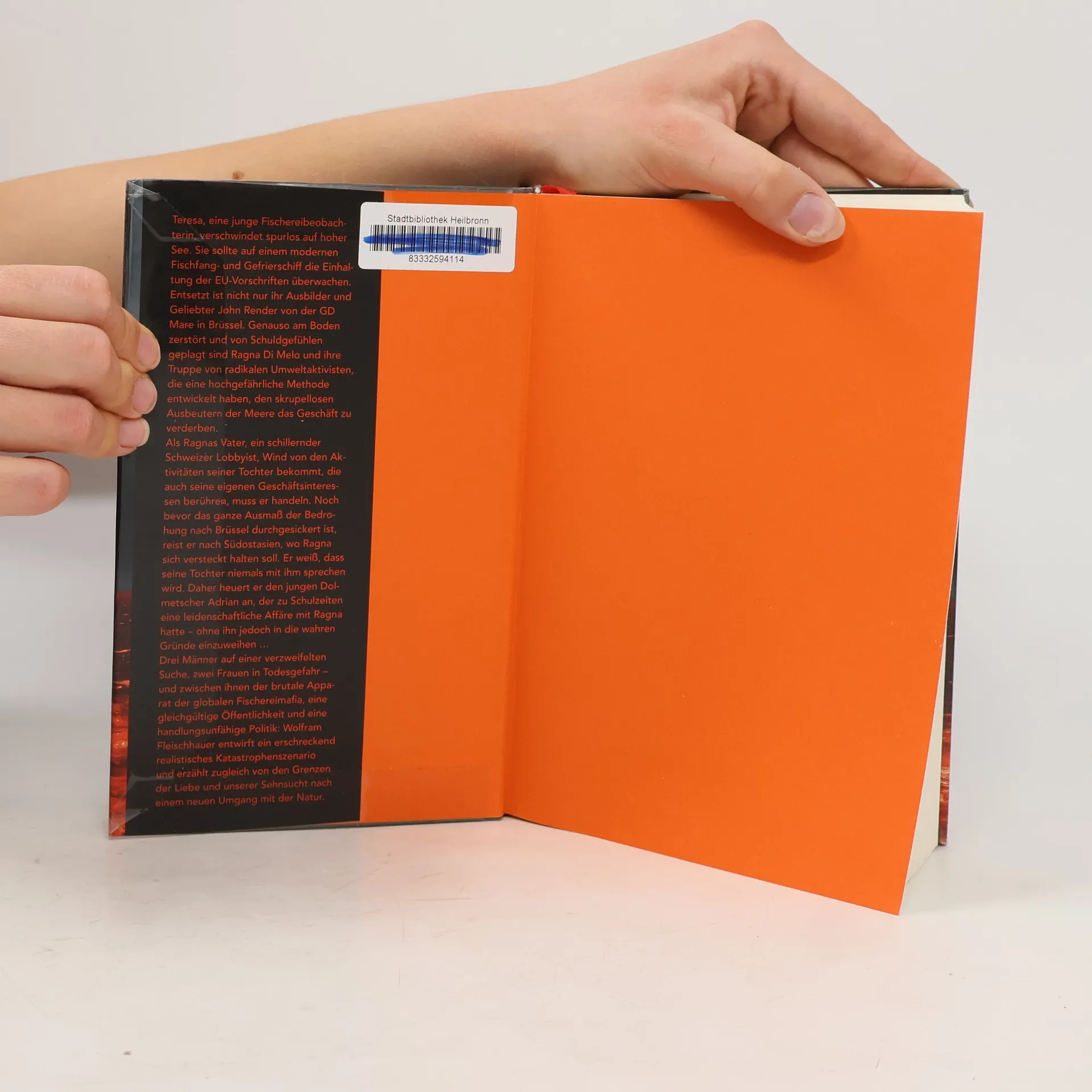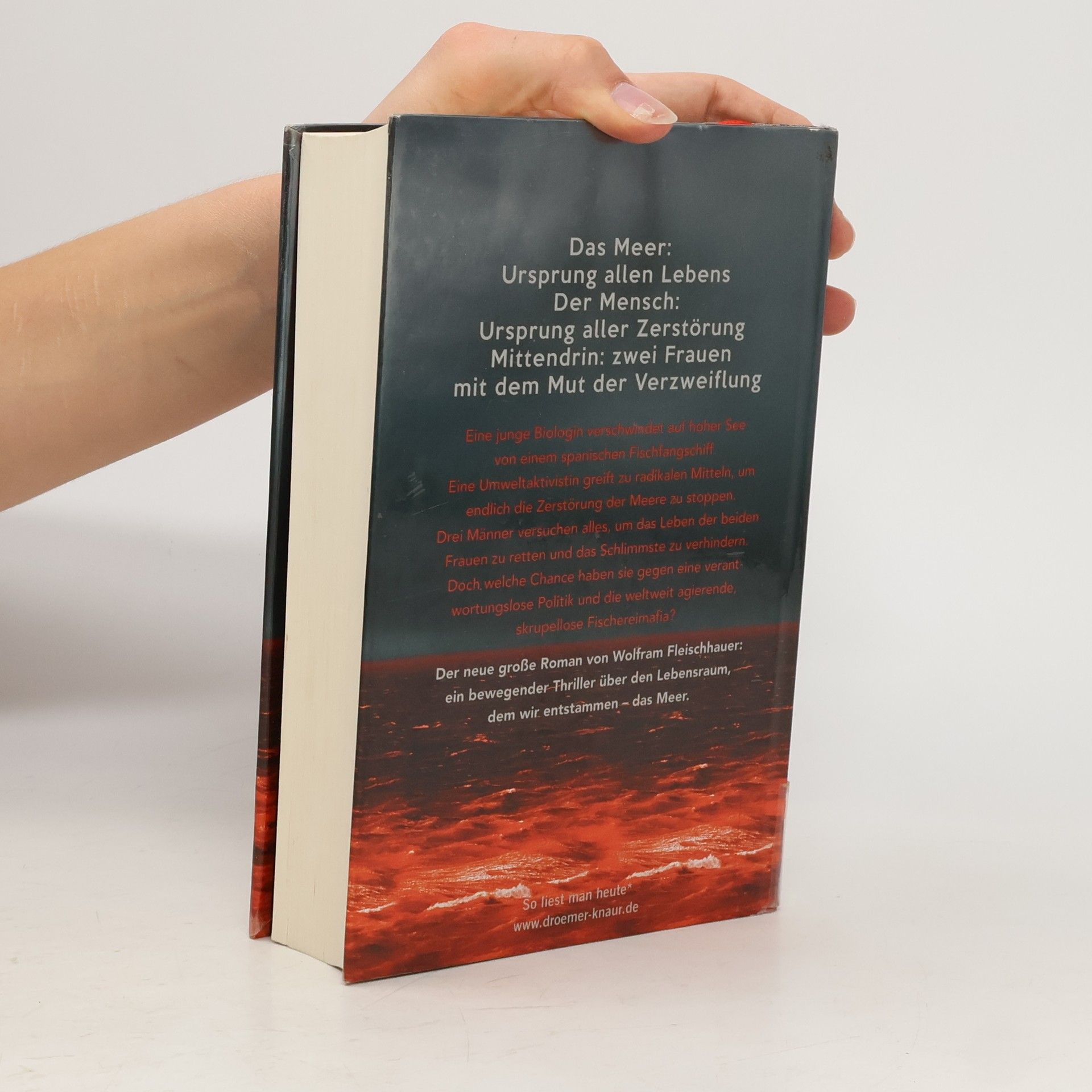Das Meer: Ursprung des Lebens. Der Mensch: Ursprung der Zerstörung. Ein Roman über Gut und Böse, über Leben und Tod. Dramatisch und erschreckend realistisch verknüpft Wolfram Fleischhauer brisante Themen mit atemloser Spannung. Teresa verschwindet spurlos auf einem modernen Fischfangschiff. Ihr Geliebter und Ausbilder John Render von der EU-Behörde in Brüssel ist entsetzt. Ragna di Melo und ihre radikalen Umweltaktivisten sind ebenfalls am Boden zerstört, da sie eine mörderische Methode entwickelt haben, um die skrupellose Ausbeutung der Meere zu stoppen. Als Ragnas Vater, ein einflussreicher Schweizer Lobbyist, von den Aktivitäten seiner Tochter erfährt, die seine eigenen Geschäftsinteressen gefährden, muss er handeln. Er reist nach Südostasien, wo Ragna sich versteckt, und weiß, dass sie niemals mit ihm sprechen wird. Daher heuert er den jungen Dolmetscher Adrian an, der eine leidenschaftliche Affäre mit Ragna hatte, ohne ihn jedoch über die wahren Gründe einzuweihen. Drei Männer auf verzweifelter Suche, zwei Frauen in Todesgefahr – zwischen ihnen der brutale Apparat der globalen Fischereimafia, eine gleichgültige Öffentlichkeit und eine handlungsunfähige Politik. Fleischhauer entwirft ein erschreckend realistisches Katastrophenszenario und erzählt von den Grenzen der Liebe und unserer Sehnsucht nach einem neuen Umgang mit der Natur.