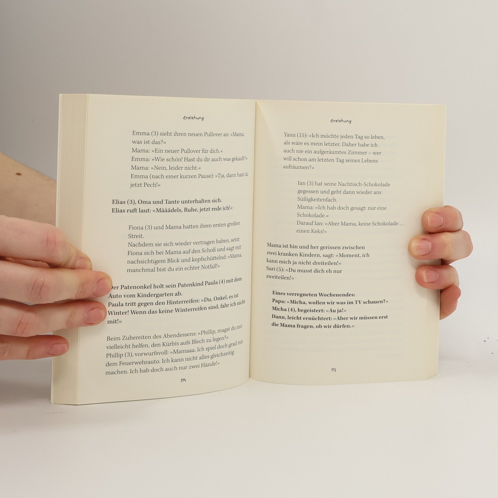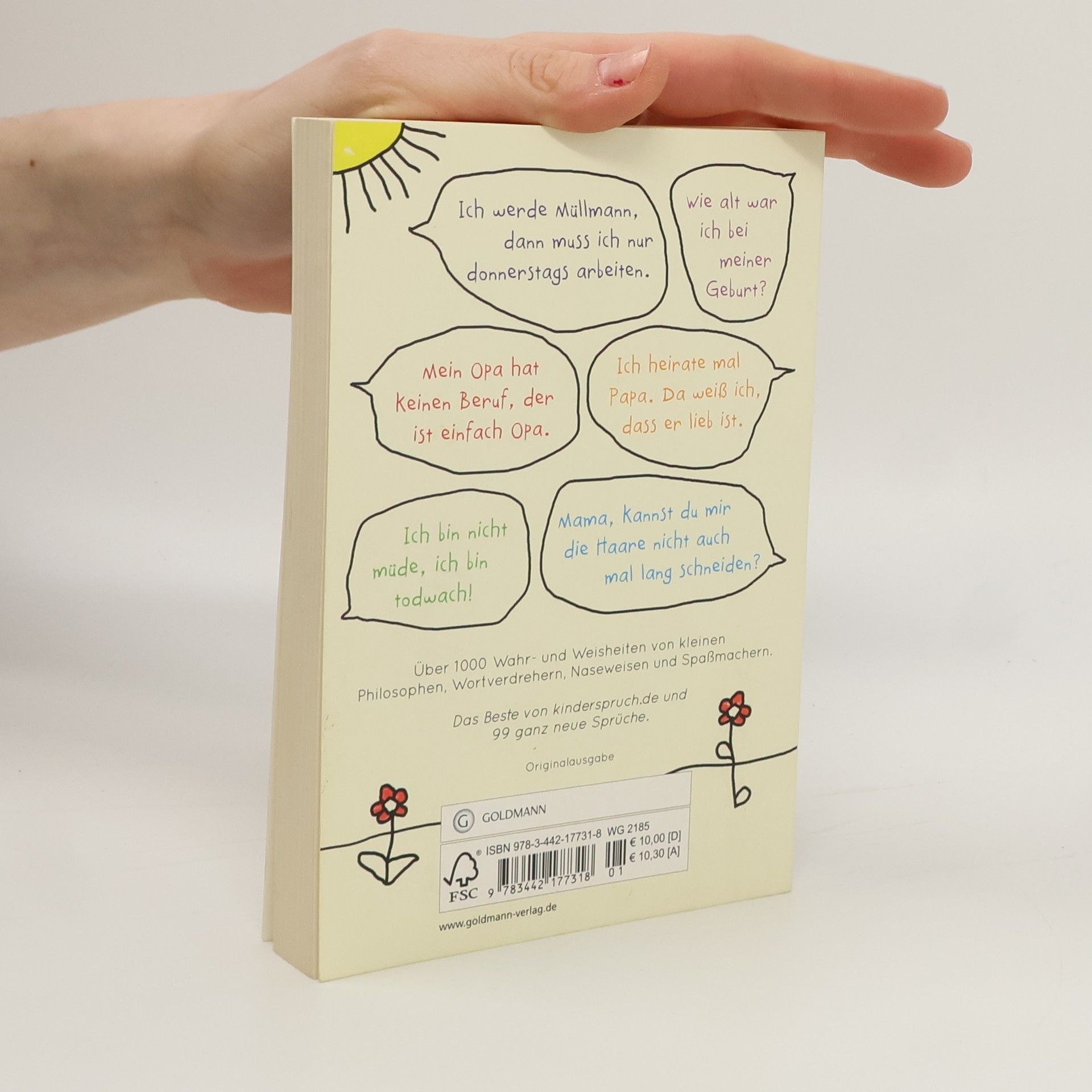 Enno Münster war immer wieder aufs Neue entzückt über die originellen Sätze seiner Tochter Mia und ihrer kleinen Freunde. Also begann er, deren Wahr- und Weisheiten zu sammeln – zunächst nur fürs eigene Album, bald aber ganz öffentlich auf der Website „Kinderspruch“ und der dazugehörigen Facebook-Seite. Die Resonanz war gewaltig: aus allen Ecken der Republik tragen ihm seither ganz normale Menschen die gesammelten Sprüche ihrer Kleinen zu. Das Buch zeigt, wie viel Witz, Fantasie und ungewollte Poesie in den Sätzen unserer Kinder steckt. Sie eröffnen uns einen neuen, oftmals viel genaueren (und lustigeren) Blick auf die Welt.