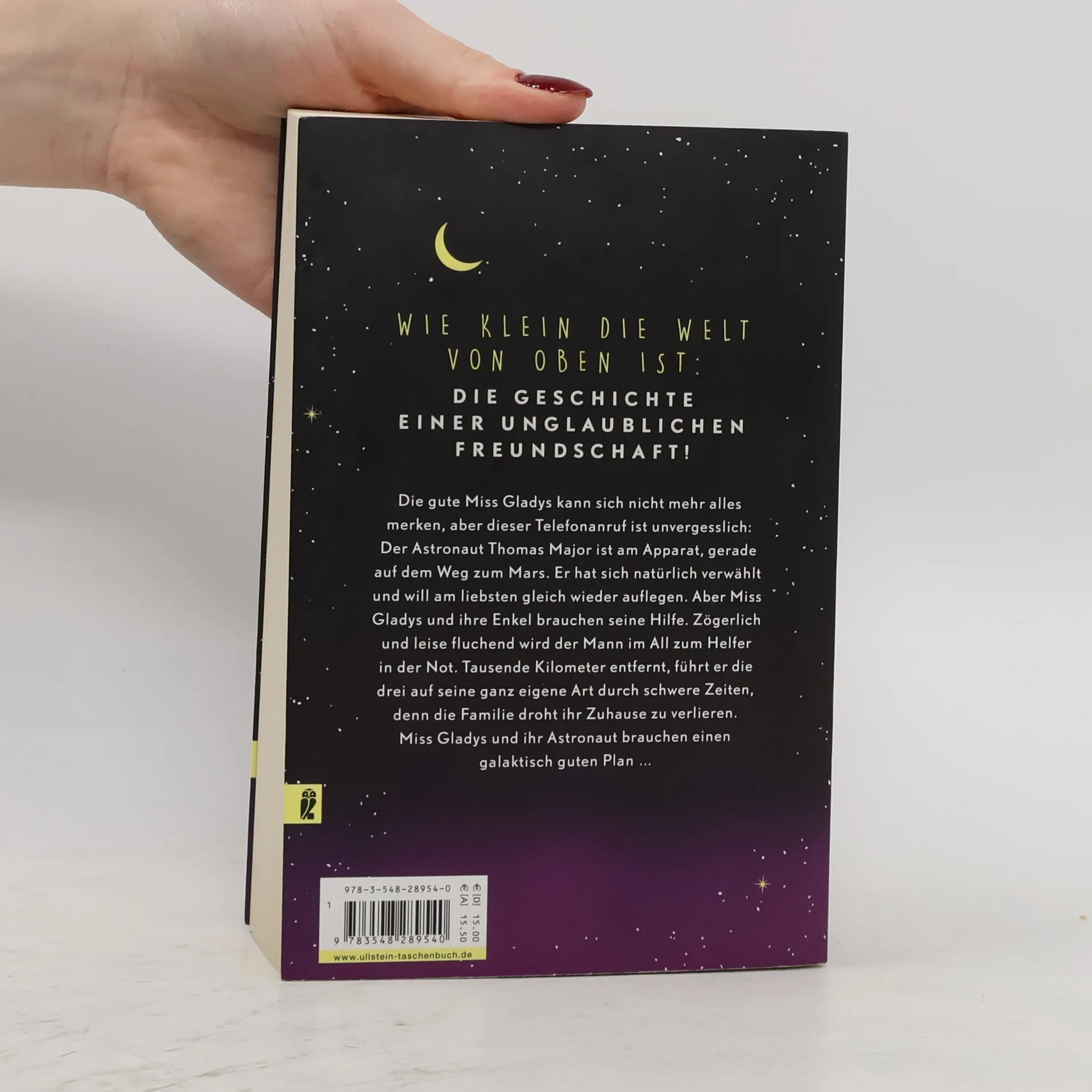 Die Geschichte einer unglaublichen Freundschaft! Die gute Miss Gladys kann sich nicht mehr alles merken, aber dieser Telefonanruf ist unvergesslich: Der Astronaut Thomas Major ist am Apparat, gerade auf dem Weg zum Mars. Er hat sich natürlich verwählt und will am liebsten gleich wieder auflegen. Aber Miss Gladys und ihre Enkel brauchen seine Hilfe. Zögerlich und leise fluchend wird der Mann im All zum Helfer in der Not. Tausende von Kilometern entfernt, führt er die drei auf seine ganz eigene Art durch schwere Zeiten, denn Familie Ormerod droht ihr Zuhause zu verlieren. Miss Gladys und ihr Astronaut brauchen einen galaktisch guten Plan … „Eine lustige, bewegende, lebensbejahende Geschichte“ Sunday Express