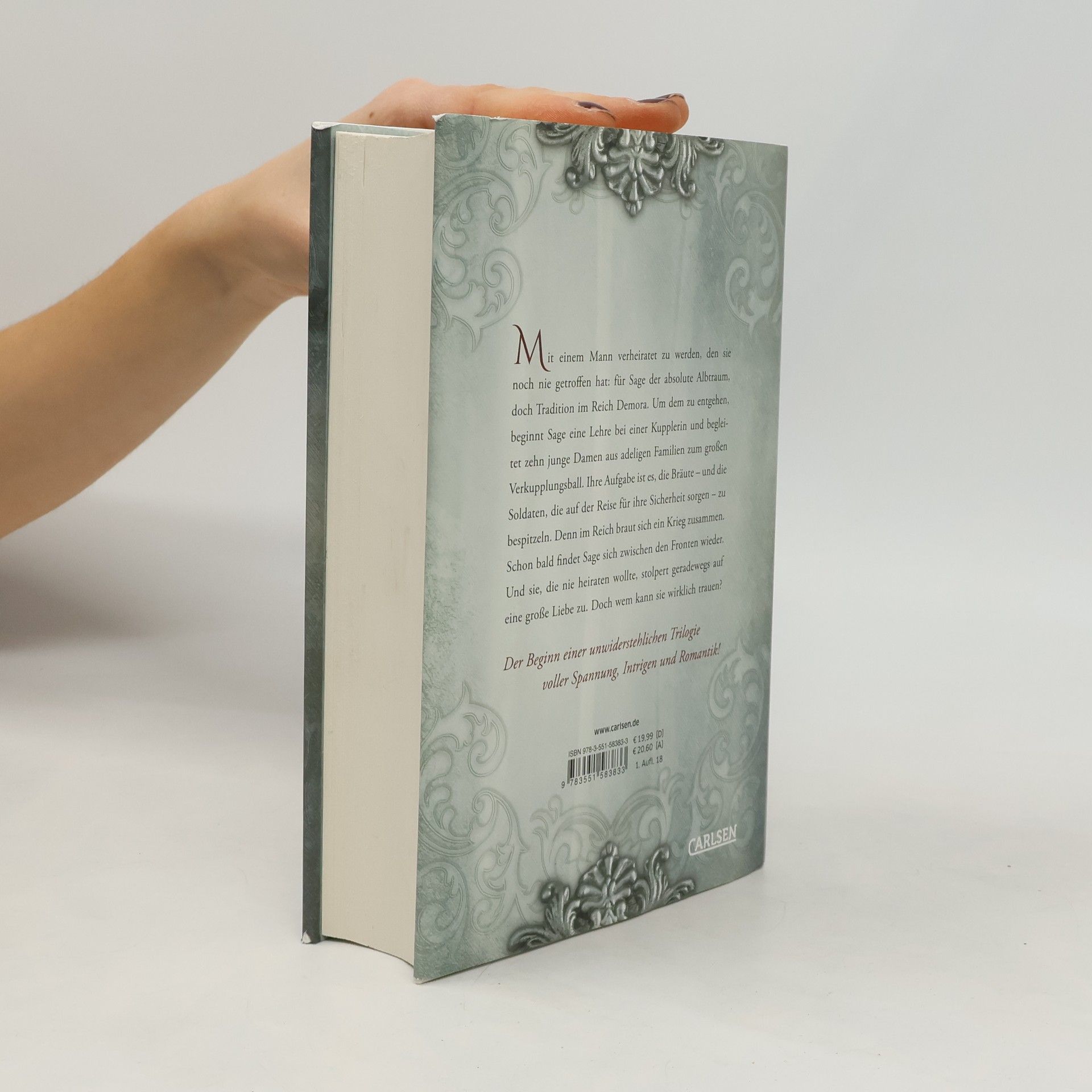 Mit einem Mann verheiratet zu werden, den sie noch nie getroffen hat: für Sage der absolute Albtraum, doch Tradition im Reich Demora. Um dem zu entgehen, beginnt Sage eine Lehre bei einer Kupplerin und begleitet zehn junge Damen aus adeligen Familien zum großen Verkupplungsball. Ihre Aufgabe ist es, die Bräute – und die Soldaten, die auf der Reise für ihre Sicherheit sorgen – zu bespitzeln. Denn im Reich braut sich ein Krieg zusammen. Schon bald findet Sage sich zwischen den Fronten wieder. Und sie, die nie heiraten wollte, stolpert geradewegs auf eine große Liebe zu. Doch wem kann sie wirklich trauen? »Vertrauen und Verrat« ist der erste Band der Fantasy-Serie »Kampf um Demora«.