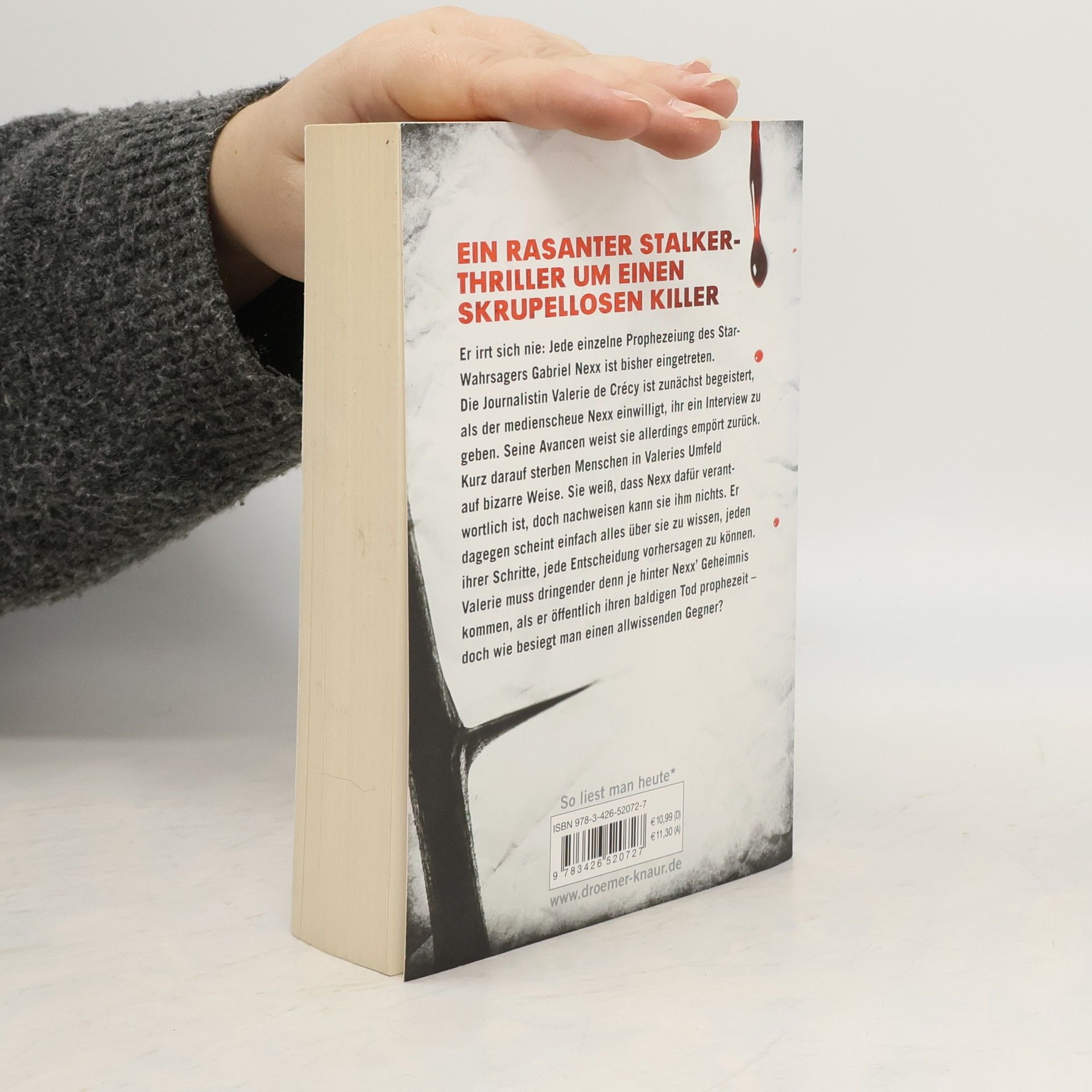 Ein rasanter Stalker-Thriller von Volker Dützer um einen skrupellosen Killer und die Chance, die der Mensch in der modernen Datenwelt noch hat Er irrt sich nie: Jede einzelne Prophezeiung des Star-Wahrsagers Gabriel Nexx ist eingetreten. Die Journalistin Valerie de Crécy ist zunächst begeistert, als der medienscheue Nexx einwilligt, ihr ein Interview zu geben. Seine Avancen weist sie allerdings empört zurück. Kurz darauf sterben Menschen in Valeries Umfeld auf bizarre Weise. Sie weiß, dass Nexx dafür verantwortlich ist, doch nachweisen kann sie ihm nichts. Er dagegen scheint einfach alles über sie zu wissen, jeden ihrer Schritte, jede Entscheidung vorhersagen zu können. Valerie muss dringender denn je hinter das Geheimnis ihres Stalkers kommen, als Nexx öffentlich ihren baldigen Tod prophezeit – doch wie besiegt man einen allwissenden Gegner?