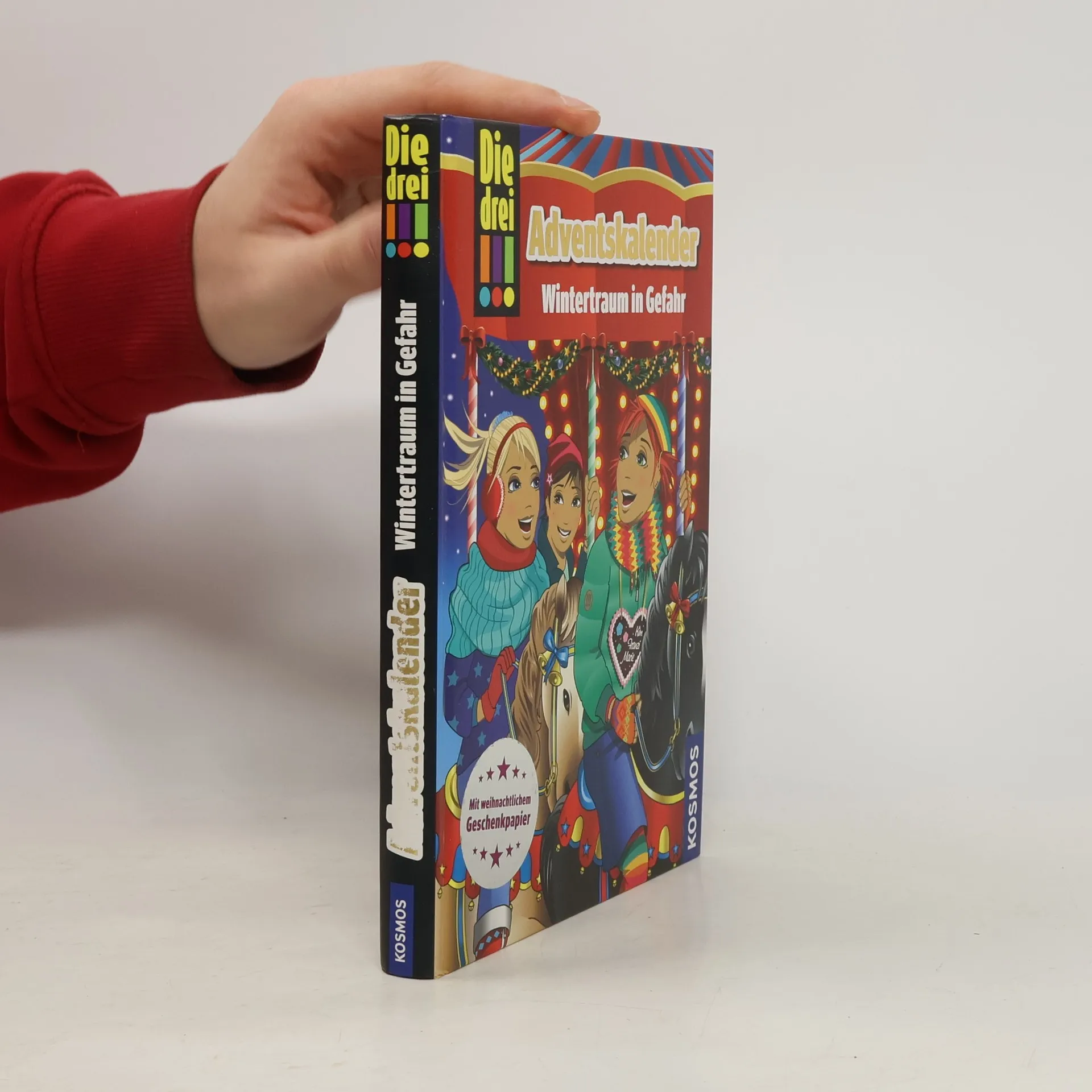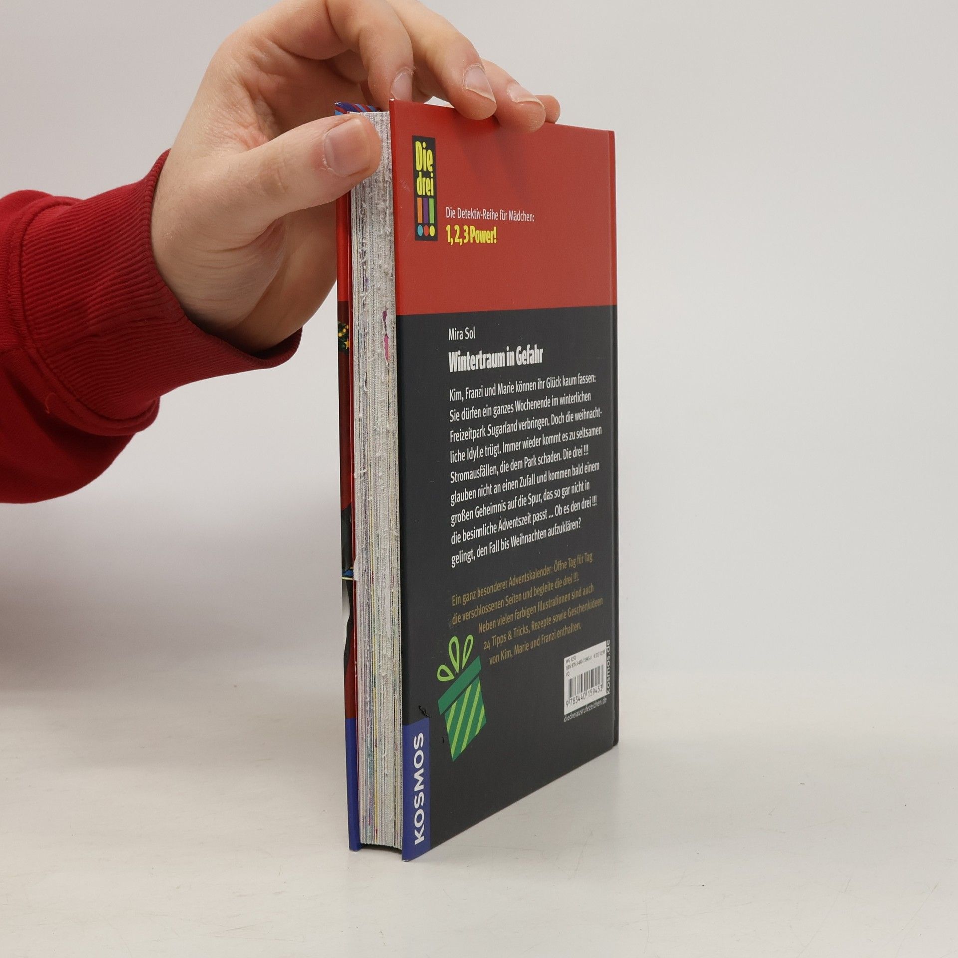 Ein ganz besonderer Adventskalender: Tag für Tag die verschlossenen Seiten öffnen und „Die drei !!!“ durch den Advent begleiten. Neben den 24 verschlossenen Kapiteln sind Rätsel, Basteltipps, Backrezepte und festliche Ideen für Styling und Geschenke von Kim, Marie und Franzi enthalten. Mit festlichem Extra: Geschenkeanhänger im „Die drei !!!“-Design. Kim, Franzi und Marie sind „Die drei !!!“. Mutig und clever ermitteln die drei Detektivinnen und sind jedem Fall gewachsen. Kim, Franzi und Marie verbringen ein Wochenende im Winterwunderland des Freizeitparks. Bei den Eisskulpturen gibt es auch echte, wertvolle Kunstwerke zu sehen. Als zwei der Bilder gestohlen werden, sind die drei !!! sofort am Tatort. Warum sind es diese Bilder? Und welches dunkle Geheimnis verbirgt der Maler?