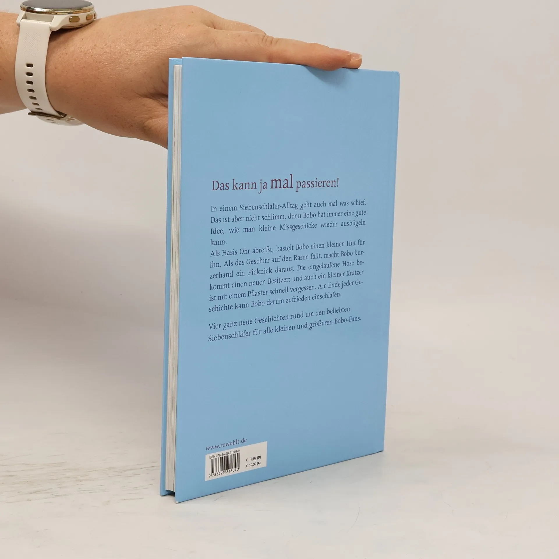 Das kann ja mal passieren! In einem Siebenschläfer-Alltag geht auch mal was schief. Das ist aber nicht schlimm, denn Bobo hat immer eine gute Idee, wie man kleine Missgeschicke wieder ausbügeln kann. Als Hasis Ohr abreißt, bastelt Bobo einen kleinen Hut für ihn. Als das Geschirr auf den Rasen fällt, macht Bobo kurzerhand ein Picknick daraus. Die eingelaufene Hose bekommt einen neuen Besitzer; und auch ein kleiner Kratzer ist mit einem Pflaster schnell vergessen. Am Ende jeder Geschichte kann Bobo darum zufrieden einschlafen. Vier ganz neue Geschichten rund um den beliebten Siebenschläfer für alle kleinen und größeren Bobo-Fans.