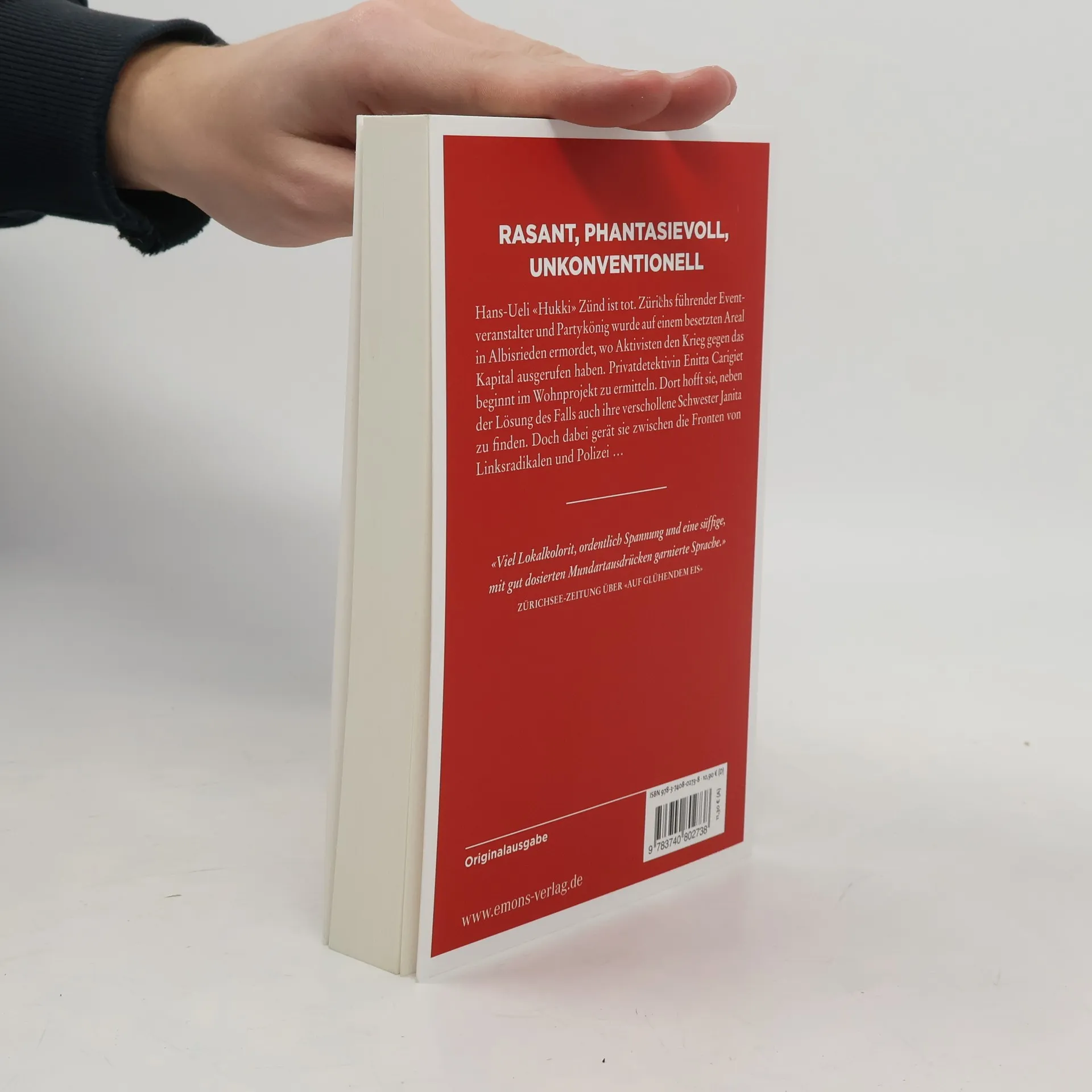 Ein neuer Fall für die Privatdetektivin und den Velokurier. Hans-Ueli «Hukki» Zünd ist tot. Zürichs führender Eventveranstalter und Partykönig wurde auf einem besetzten Areal in Albisrieden ermordet, wo Aktivisten den Krieg gegen das Kapital ausgerufen haben. Privatdetektivin Enitta Carigiet beginnt im Wohnprojekt zu ermitteln. Dort hofft sie, neben der Lösung des Falls auch ihre verschollene Schwester Janita zu finden. Doch dabei gerät sie zwischen die Fronten von Linksradikalen und Polizei ...