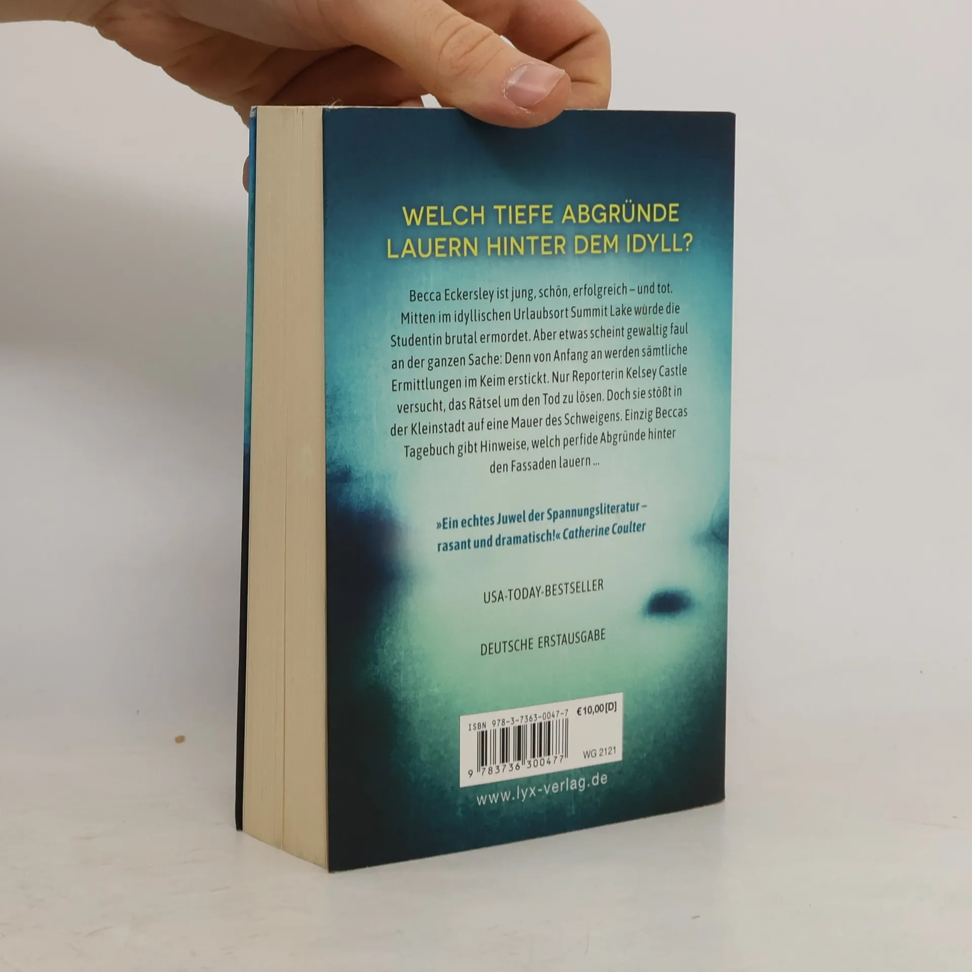 Welch tiefe Abgründe lauern hinter dem Idyll? Becca Eckersley ist jung, schön, erfolgreich - und tot. Mitten im idyllischen Urlaubsort Summit Lake wurde die aufstrebende Studentin brutal ermordet. Aber etwas scheint gewaltig faul an der ganzen Sache: Denn von Anfang an werden sämtliche Ermittlungen im Keim erstickt. Nur Reporterin Kelsey Castle versucht, das Rätsel um den Tod zu lösen. Doch sie stößt in der Kleinstadt auf eine Mauer des Schweigens. Einzig Beccas Tagebuch gibt Hinweise, welch perfide Abgründe hinter den Fassaden lauern ... „Ein echtes Juwel der Spannungsliteratur - rasant und dramatisch!“ Catherine Coulter